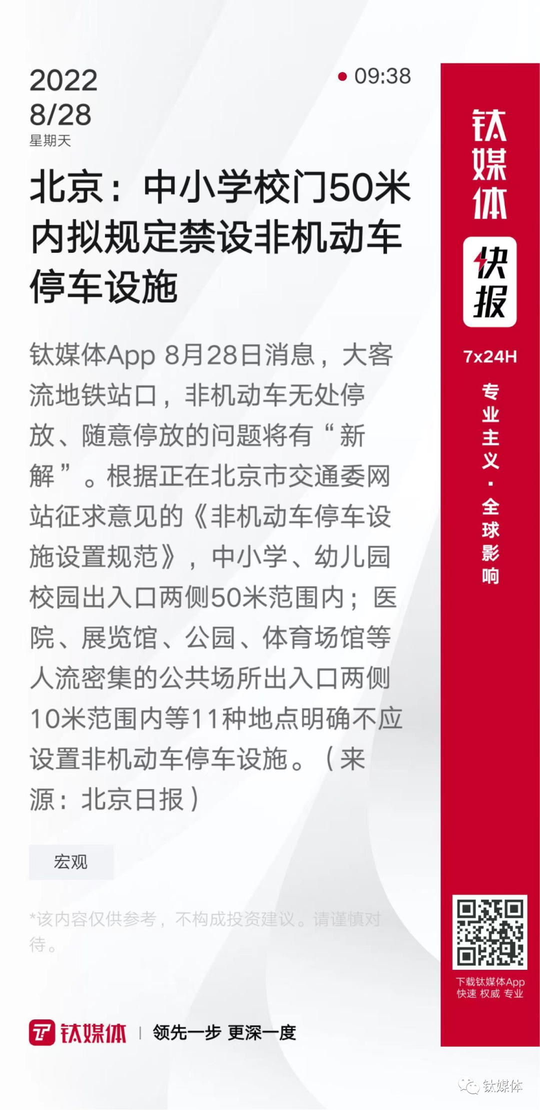 【北京:中小学校门50米内拟规定禁设非机动车停车设施】