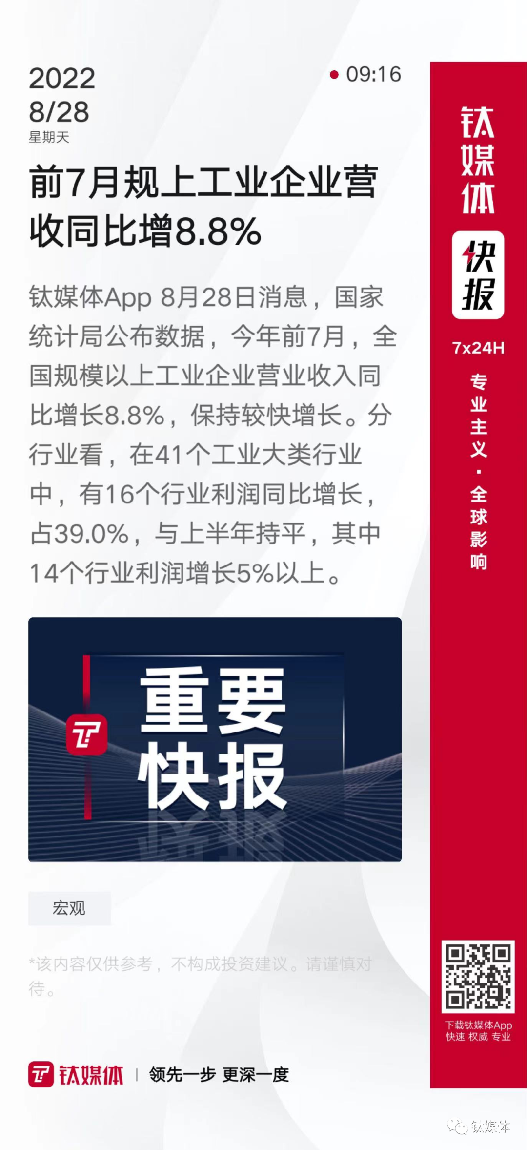 【前7月规上工业企业营收同比增8.8%】
