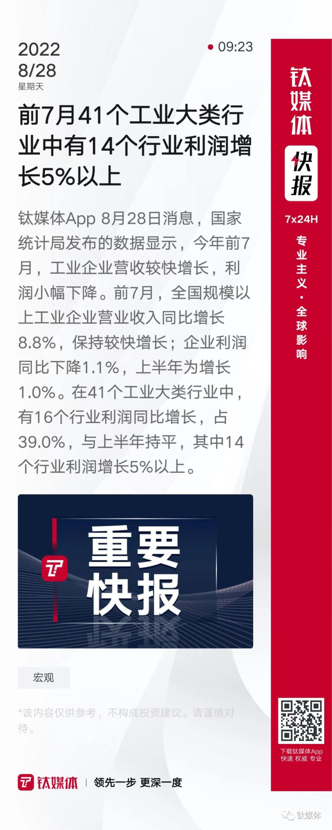 【前7月41个工业大类行业中有14个行业利润增长5%以上】