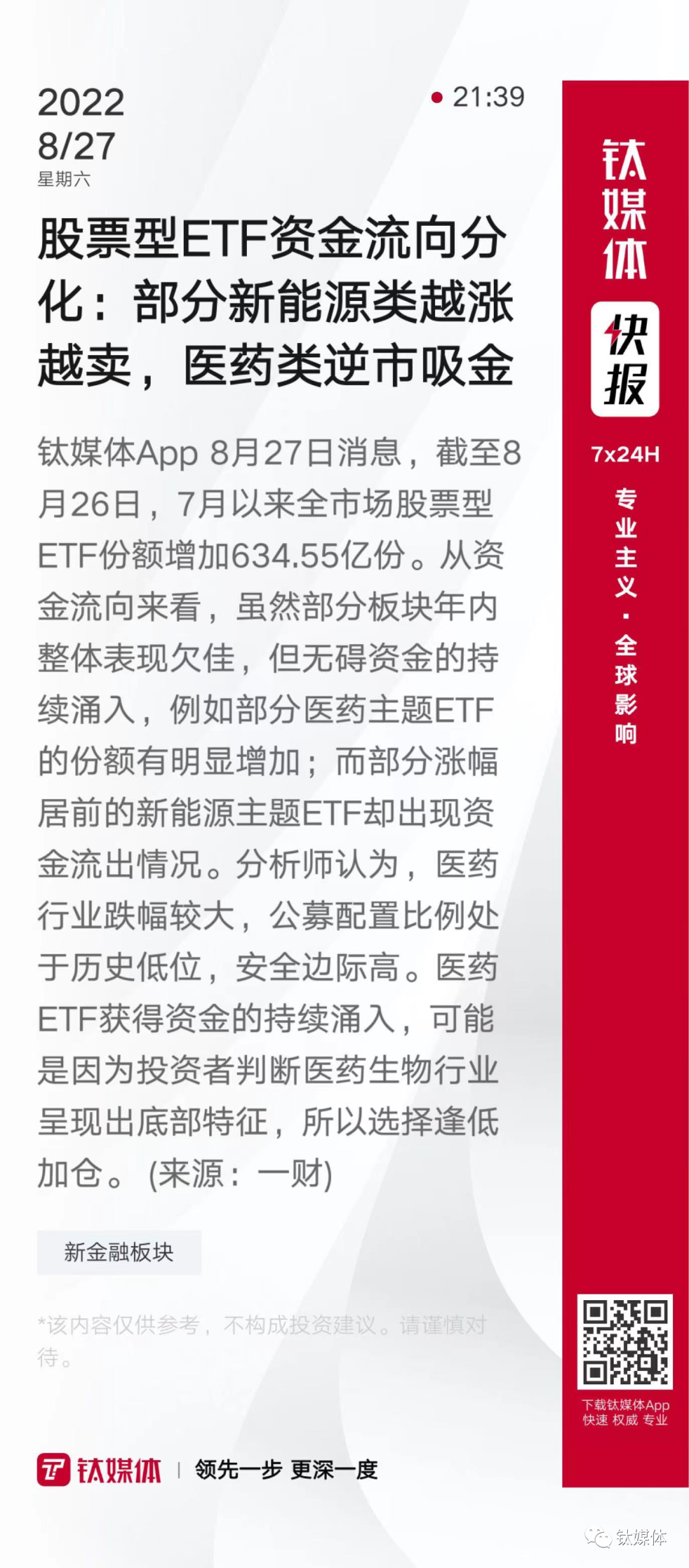 【股票型ETF资金流向分化:部分新能源类越涨越卖,医药类逆市吸金】