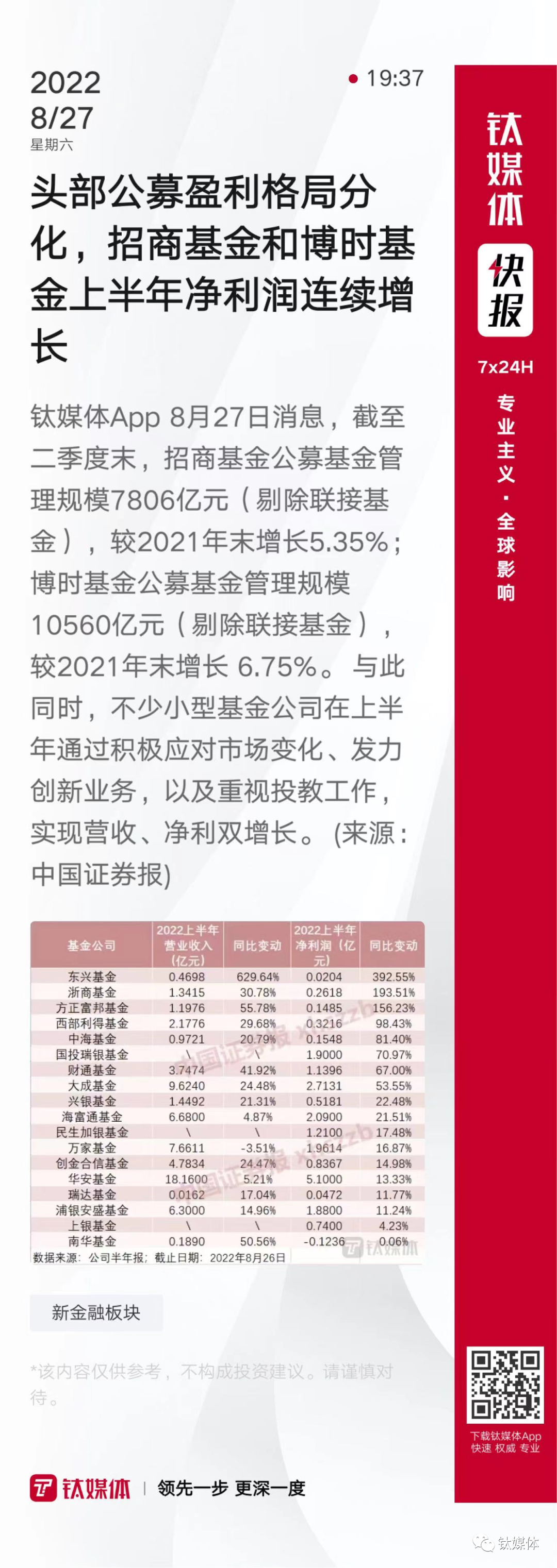 【头部公募盈利格局分化,招商基金和博时基金上半年净利润连续增长】
