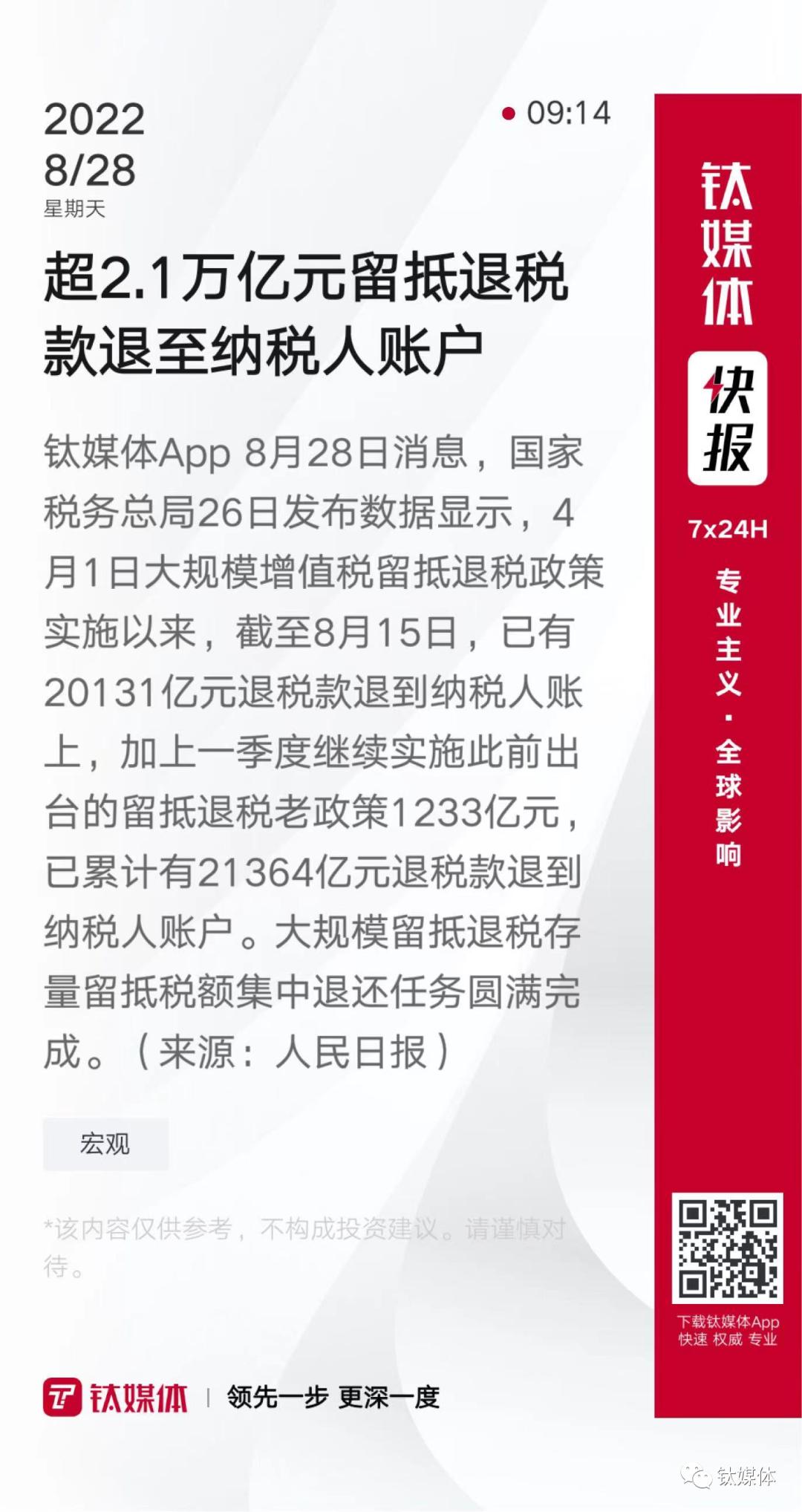 【超2.1万亿元留抵退税款退至纳税人账户】