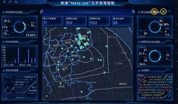 “你去元宇宙招聘会了吗?”这是最近在大学毕业生们中的流行问候语。新奇有趣的“元宇宙招聘会”,无疑是疫情下学生们热议的话题之一。前不久,清华大学与上海杨浦区分别打造了一场元宇宙招聘会,因形式新颖而备受00后求职者关注。今年6月21日,杨浦“meta job”元宇宙招聘大厅正式发布。与以往的线上招聘会不同,这是一个虚拟和现实深度交融的实时互动招聘大会。场景利用“虚拟环境”加上“实时互动”,高度模拟线下招聘会现场,应聘者只要点击“信息板”就能看到整场活动数据,定向了解企业信息与岗位要求,快速定位与自身的匹配度。同时,参会企业也有自己的专属展位和品牌标识,展位设有面试区和等候区,以及企业介绍、企业视频、简历投递、二维码等资料,走进即可打开查看信息。对于不少应届生来说,虽然对在线招聘的流程都已经非常熟悉,但是在进入这次“Meta Job”元宇宙招聘时,他们还是会感到眼前一亮。“可以选择人物,还能用键盘鼠标控制人物方向”,在刚进入大厅时,甚至让人有一种错觉,感觉自己不是来求职的,而是在玩一款招聘主题的游戏。
