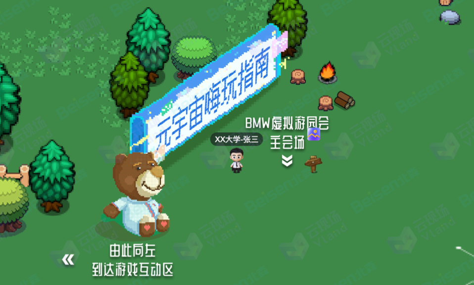 在元宇宙场景中,每个人都拥有自己的虚拟形象,可随时切换不同的形象外貌,还可以设置昵称,比如:XX大学-张三。
