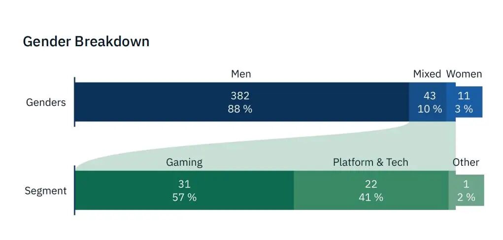 该报告还研究了参与已完成交易436家公司创始人的性别差异,这些公司88%由男性创办,10%(43家公司)由男性和女性联合创办,只有3%的公司由女性创建。
