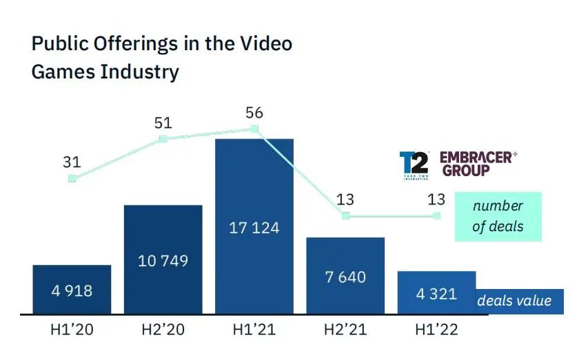 尽管如此,2022Q2环比出现了改善,Take-Two出售了27亿美元的优先票据,Embracer通过向Savvy Gaming Group发行股份得到10亿美元。宏观经济的改变很明显影响了公开市场的投资氛围,尤其是后IDFA时代的买量挑战以及3A游戏不断跳票,都给公开市场投资人带来了额外压力。