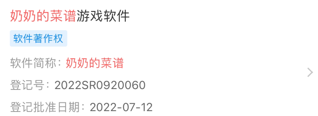 距离知道信息一周后,《奶奶的菜谱》制作人仍在维权中。他们首先在两个平台举报。其中一个平台很快下架了。而另一边有些麻烦,因为其屏蔽了境外用户对小游戏的访问,他们只能托国内朋友帮忙举报。后来通过与游戏行业的朋友交流后,找到了公司信息,发现对面甚至已对《奶奶的菜谱》进行了软件著作权登记。