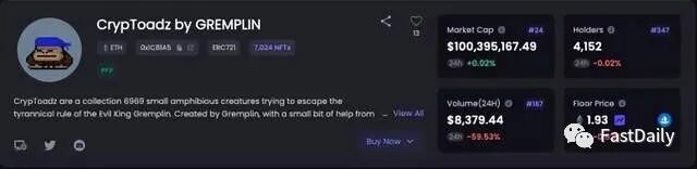 图3 : CrypToadz by GREMPLIN基本信息 信息源:NFT go