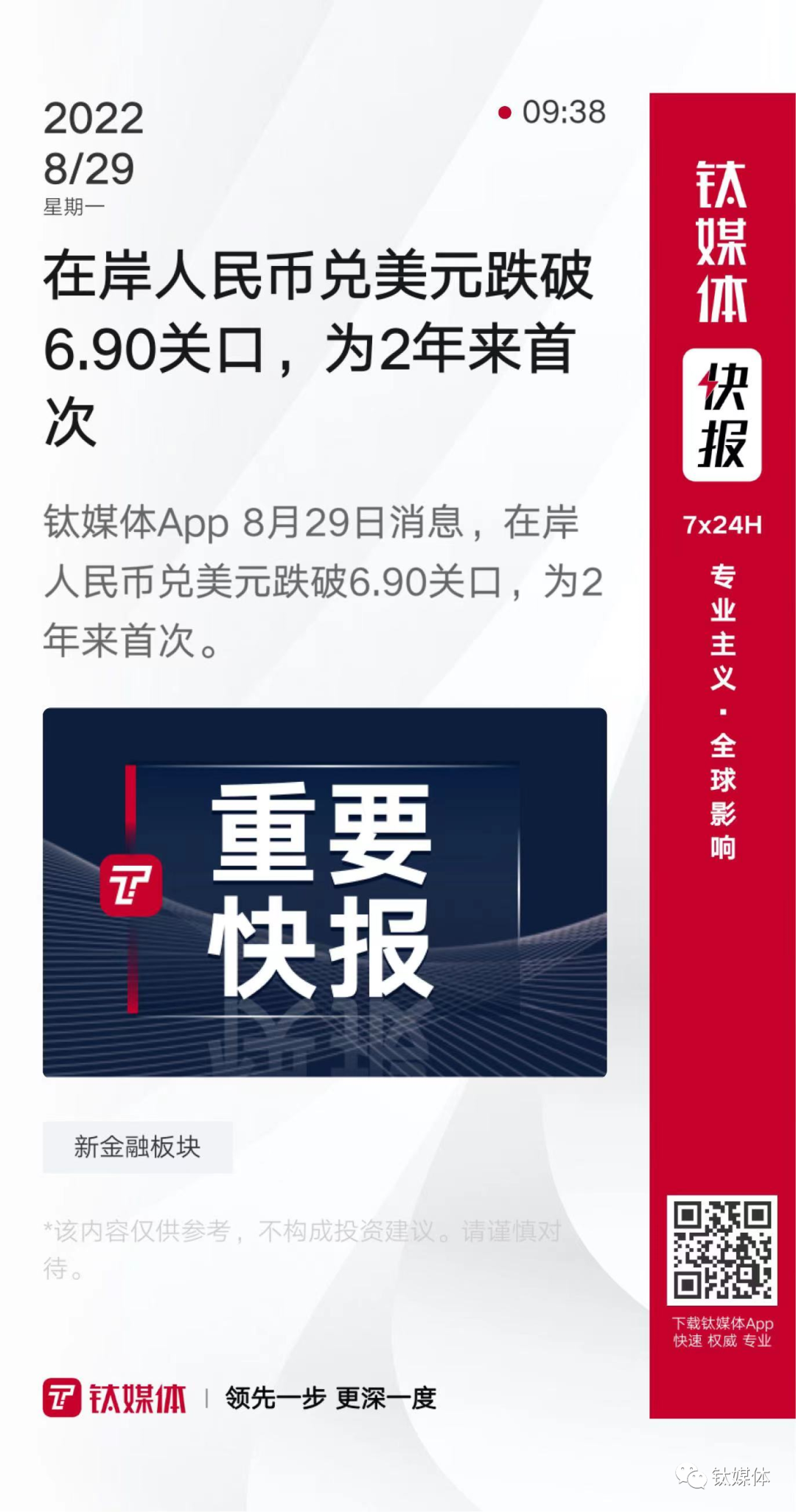 【在岸人民币兑美元跌破6.90关口,为2年来首次】