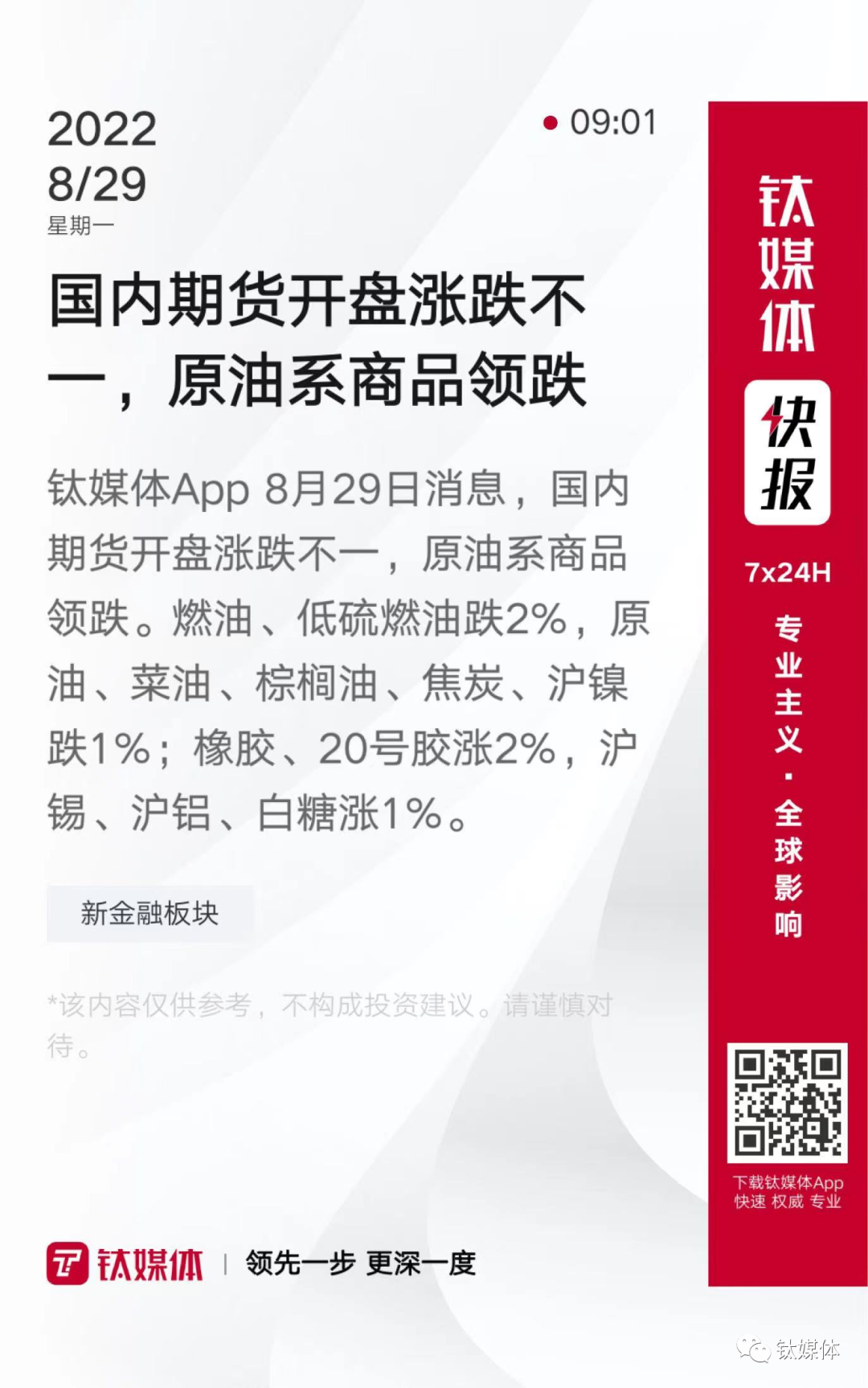 【国内期货开盘涨跌不一,原油系商品领跌】