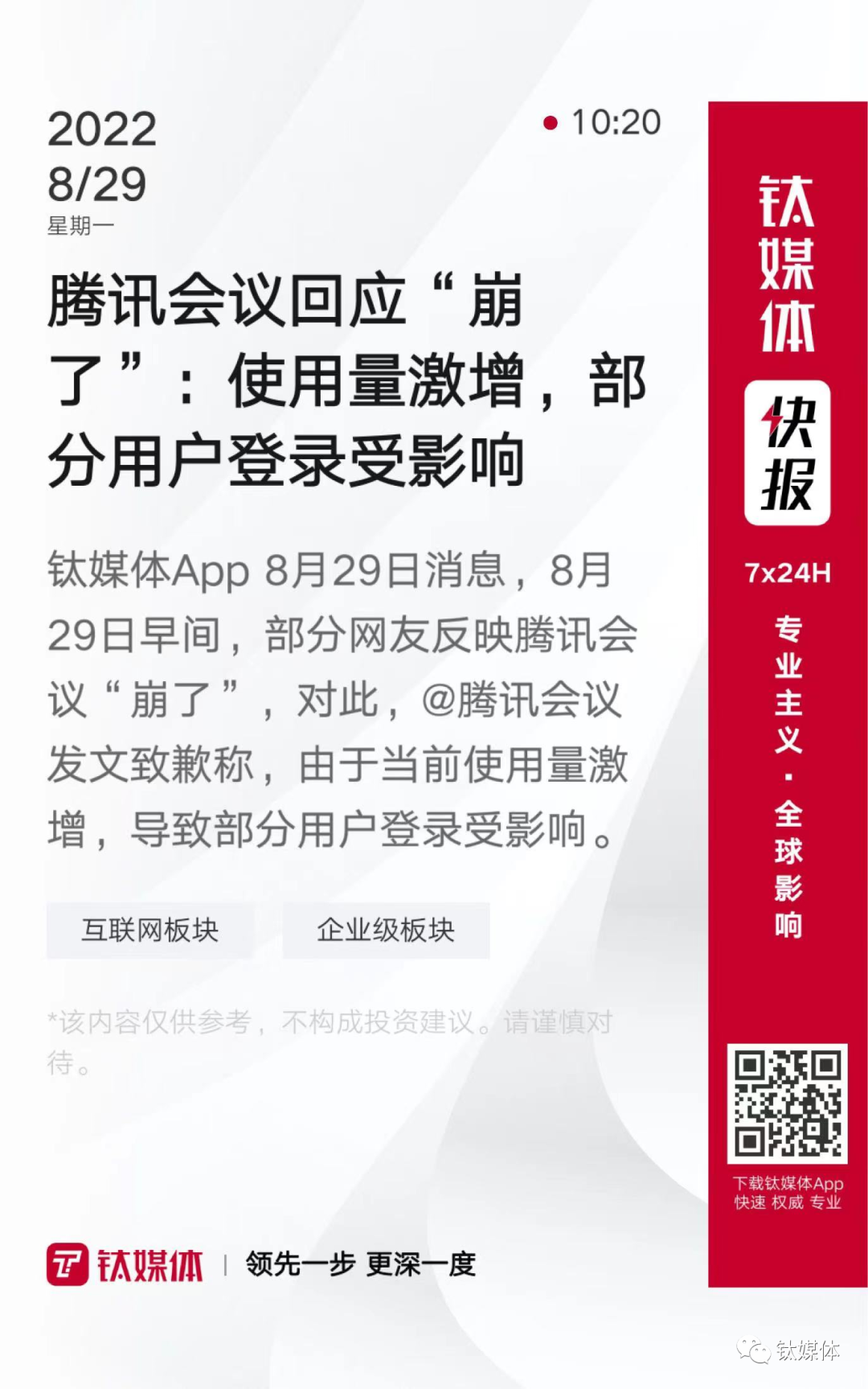 【腾讯会议回应“崩了”:使用量激增,部分用户登录受影响】