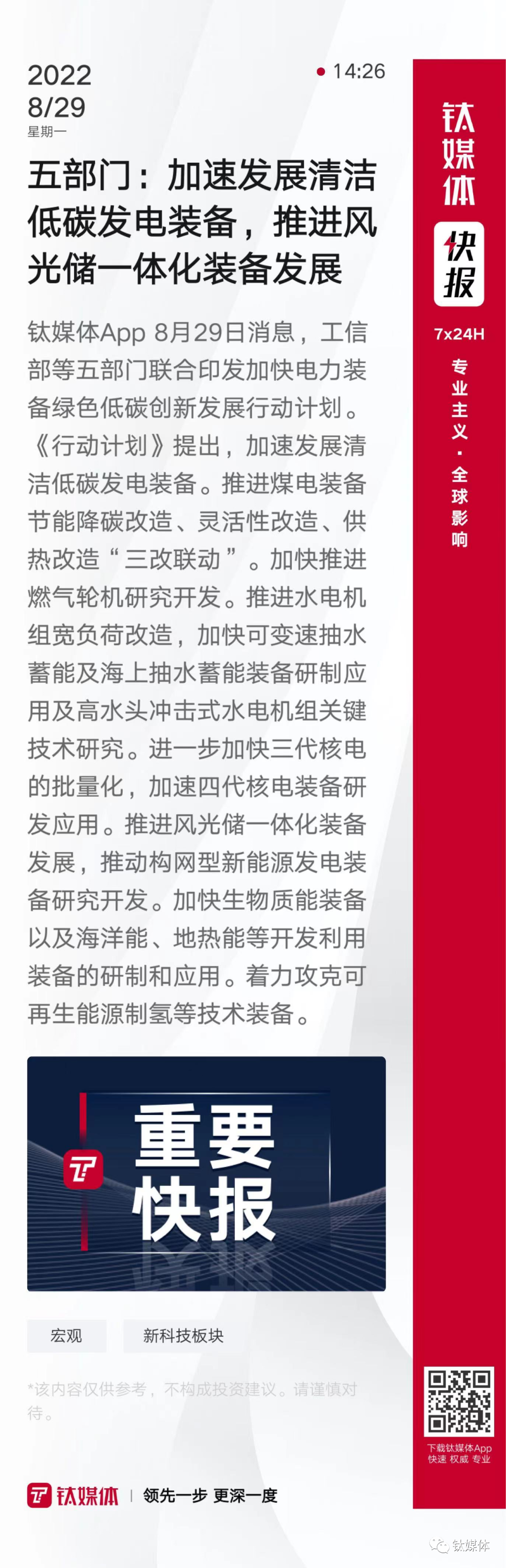 【五部门:加速发展清洁低碳发电装备,推进风光储一体化装备发展】
