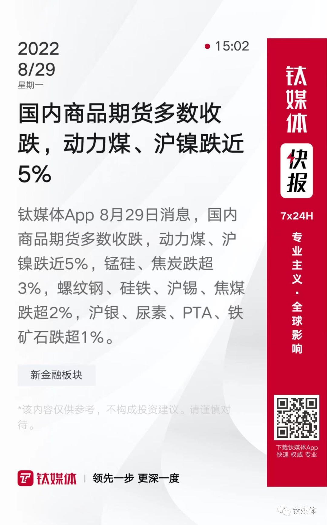 【国内商品期货多数收跌,动力煤、沪镍跌近5%】