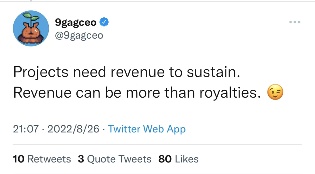 丢掉了版税的NFT项目方们,剩下的路会更加难走,但是这并不代表无路可走。项目方应该更注重搭建自己的品牌,通过IP进行变现,并且积极将自己的利益与持有人的利益进行绑定,将现有的版权收费制转换为IP变现制,方能走出版权困局。