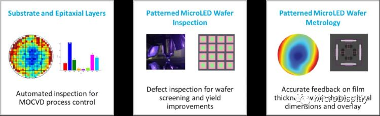 KLA公司因应这样的需求,针对MicroLED提出全方位LED生产与制程监控的解决方案,其中涉及多个制程阶段,包括磊晶制程、microLED图形化、驱动IC生产、显示背板及巨量转移,并以数据分析串联检测资料流,贡献整个microLED制造的良率提升— 从磊晶到最终microLED显示器,我们经过市场验证的制程与制程监控设备,旨在满足独特又严苛的microLED生产流程所面临的各种新挑战,并能加速提升广泛应用市场所需的产能,协助客户达成高良率目标。