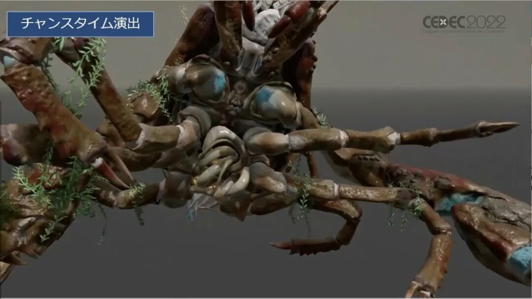 在游戏中,如果大鳌虾受到适当的伤害,它会后退并露出肚皮,而腹部中央出现的类似水蛭的寄生虫正是游戏中设计的一个可被攻击的弱点,寄生虫剧烈蠕动,但里面没有骨头。这样的设计就完全是源自对真实小龙虾和寄生虫关系的观察。