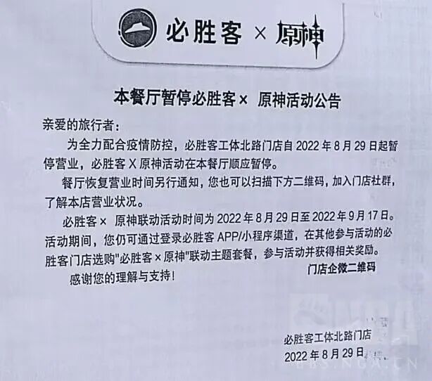 果不其然,昨日,这场联动正式开启线下的兑换活动,并很快就因全国各地必胜客餐厅门口的大排长龙成为了网友们热议的话题。由于不少地区还处于疫情防控关键期,一些必胜客餐厅更是因人群聚集而被迫暂停营业,超乎寻常的人气,也让米哈游和玩家们迎来了“幸福的烦恼”。