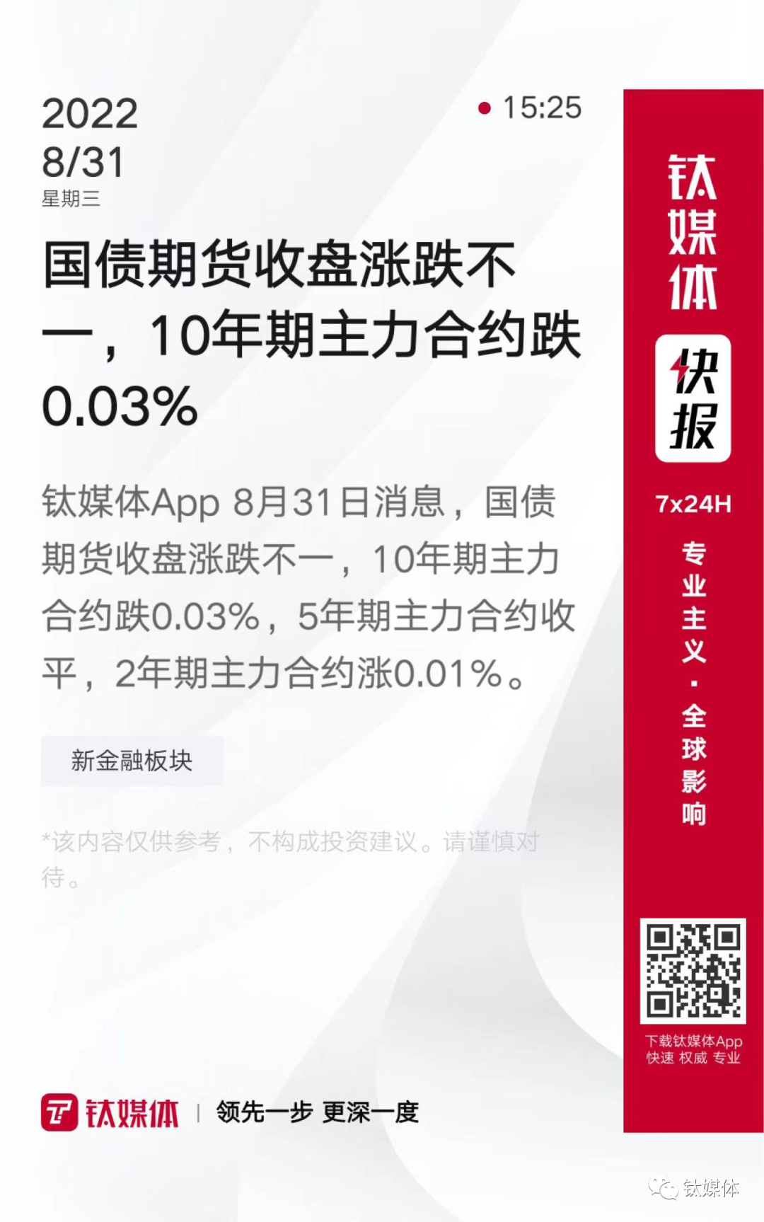 【国债期货收盘涨跌不一,10年期主力合约跌0.03%】