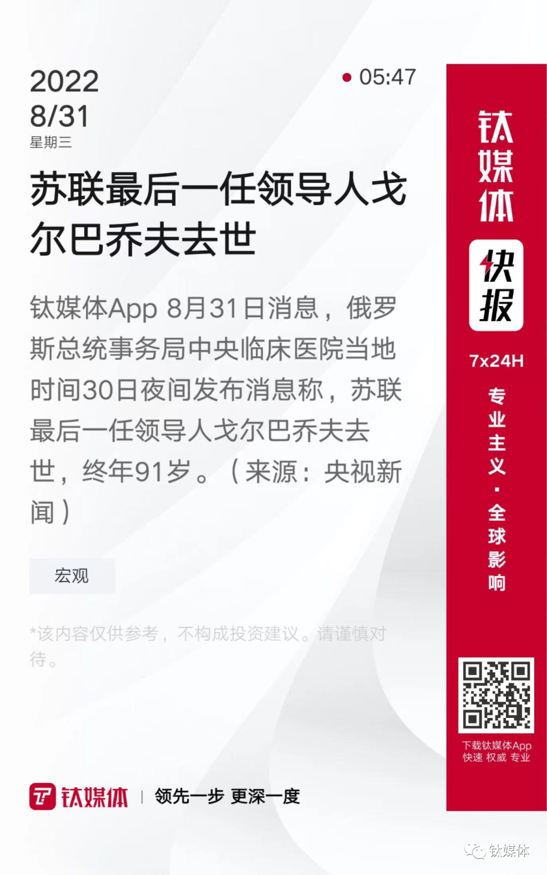 【苏联最后一任领导人戈尔巴乔夫去世】