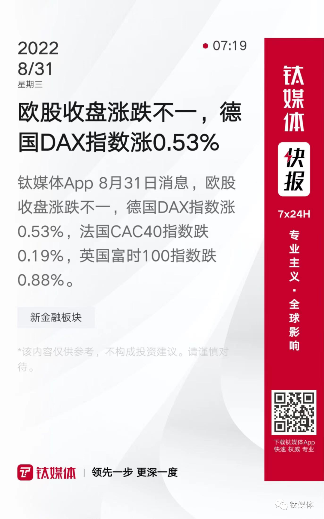【欧股收盘涨跌不一,德国DAX指数涨0.53%】