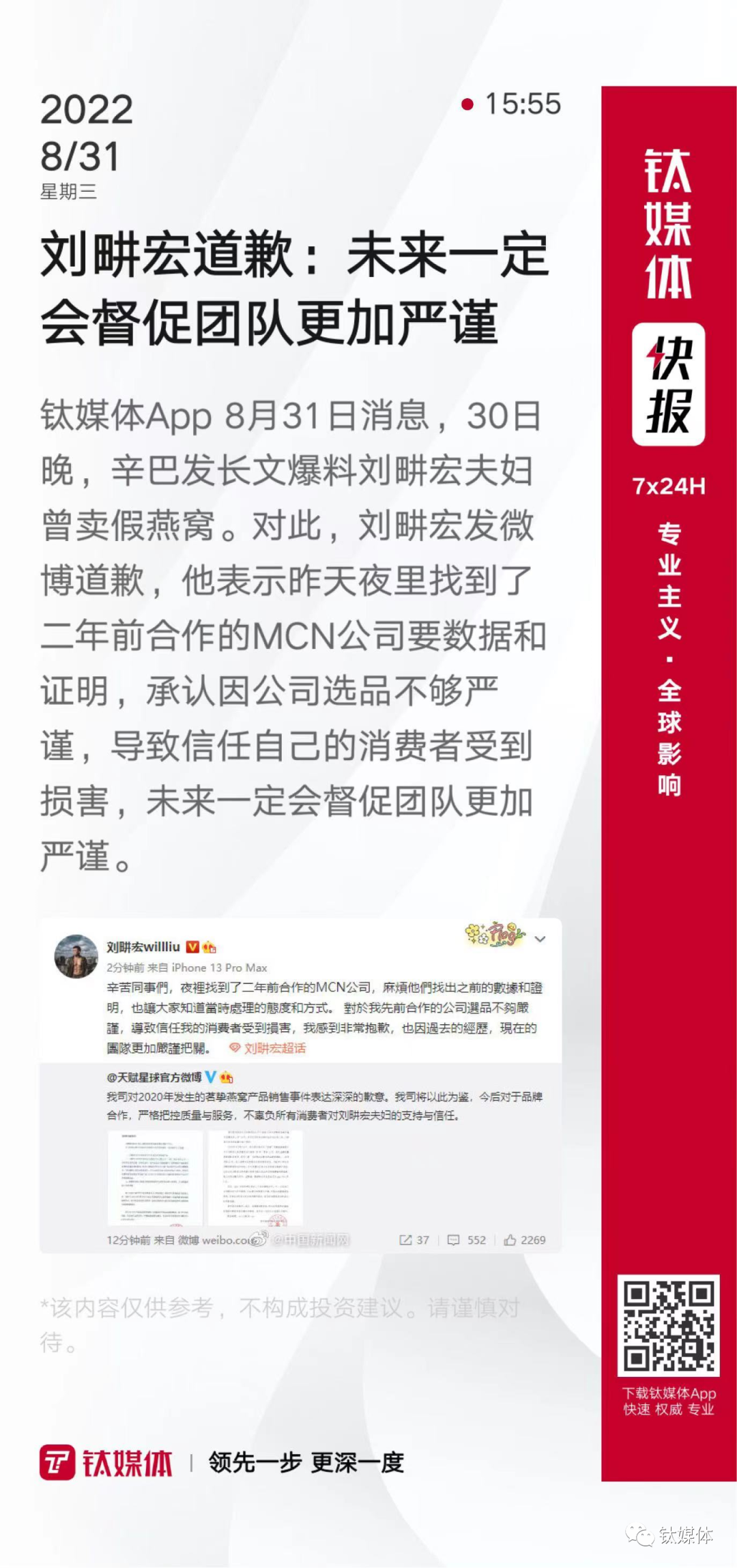 【刘畊宏道歉:未来一定会督促团队更加严谨】