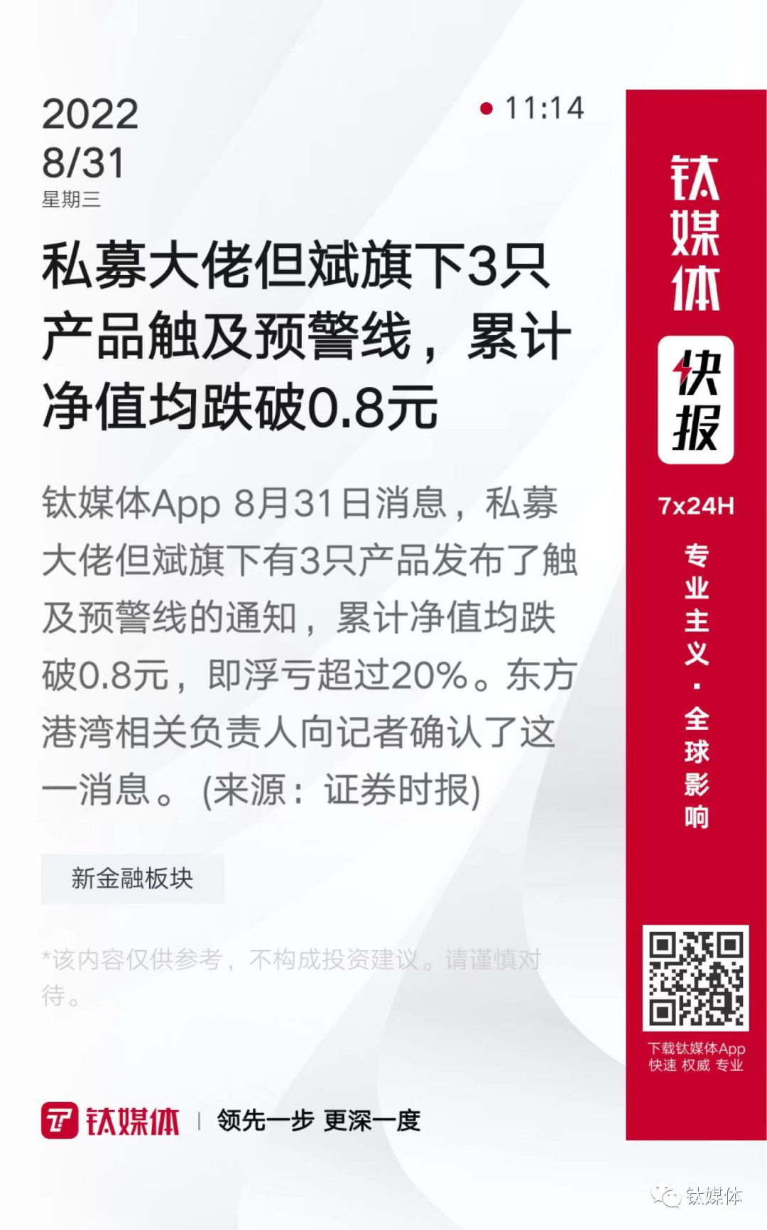 【私募大佬但斌旗下3只产品触及预警线,累计净值均跌破0.8元】