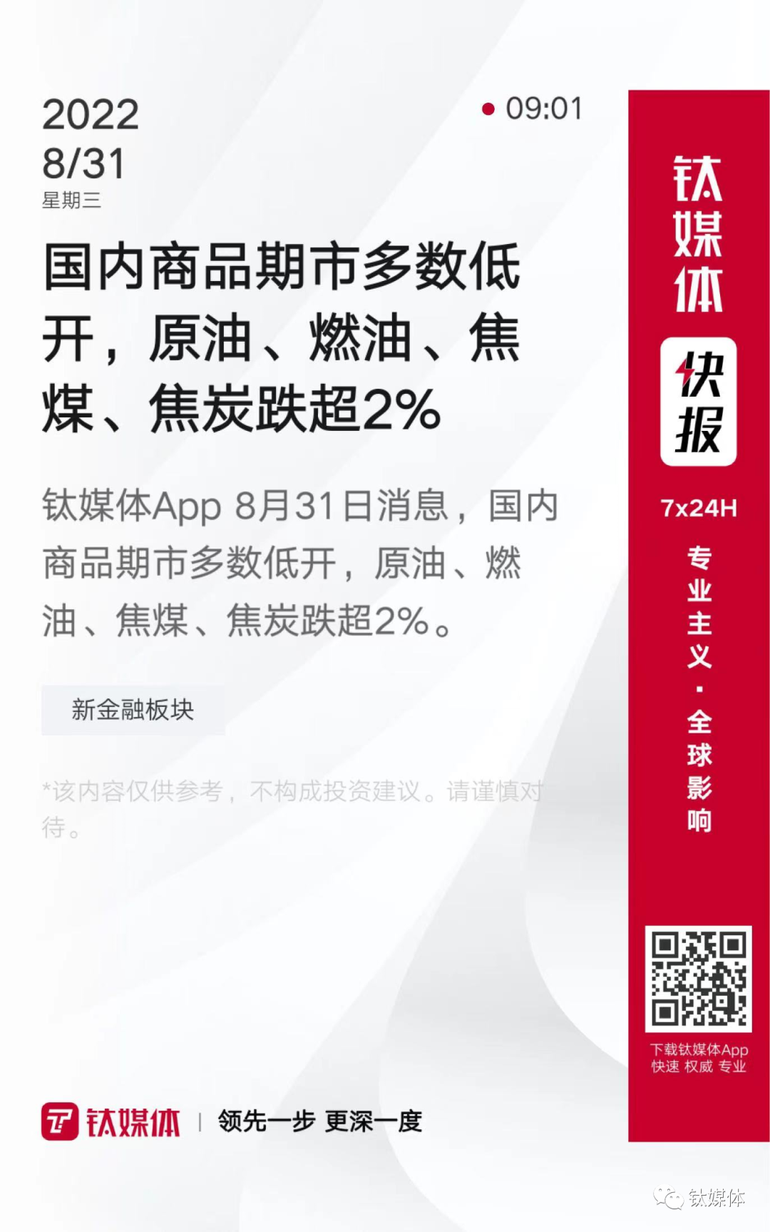 【国内商品期市多数低开,原油、燃油、焦煤、焦炭跌超2%】