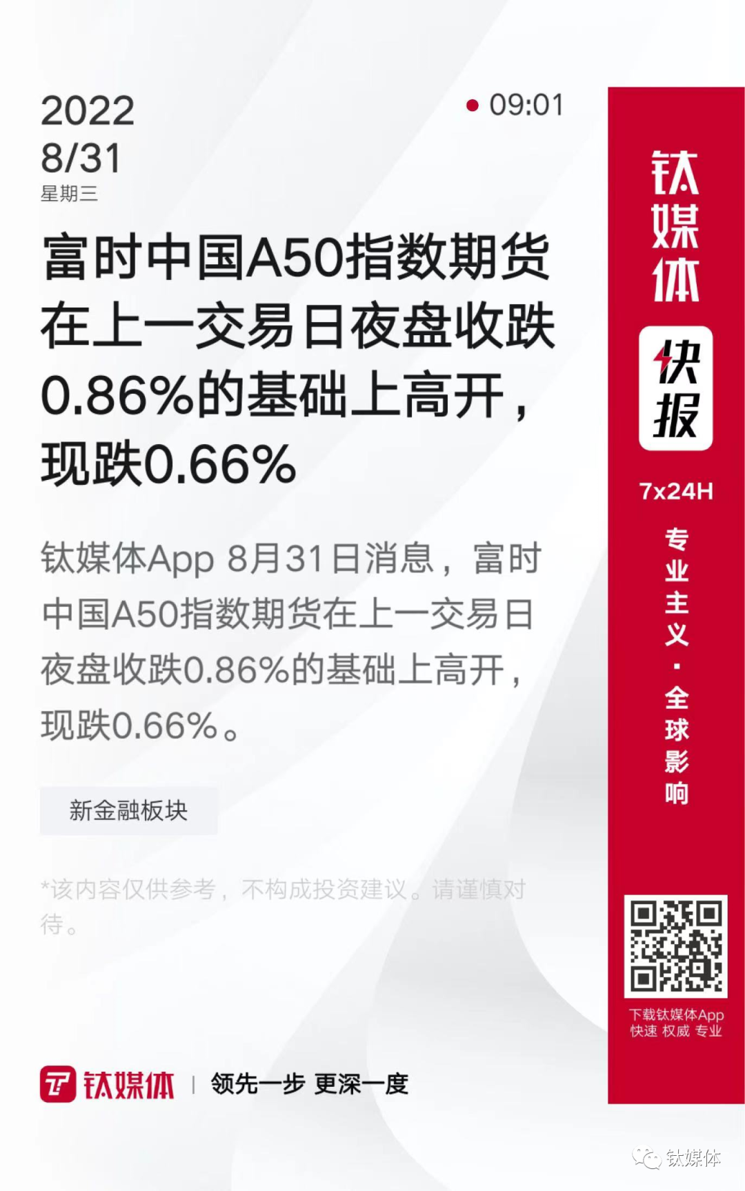 【富时中国A50指数期货在上一交易日夜盘收跌0.86%的基础上高开,现跌0.66%】