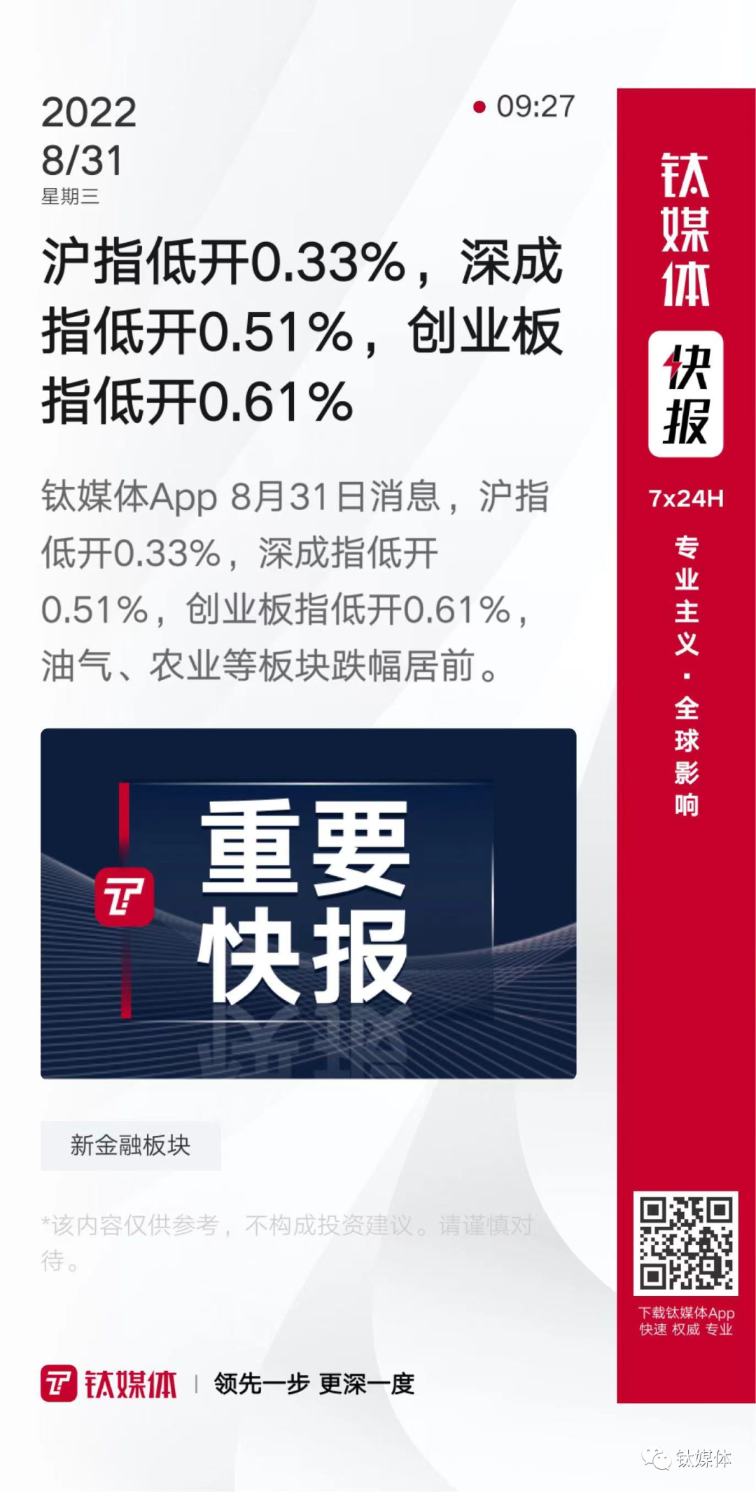 【沪指低开0.33%,深成指低开0.51%,创业板指低开0.61%】