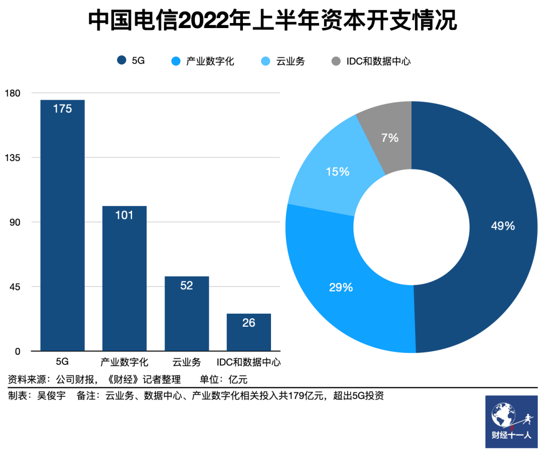 8月16日,中国电信发布了2022年上半年业绩报告。中国移动、中国联通、中国电信三大运营商今年上半年业绩均已出炉。云计算成为三大运营商业绩最突出部分,三家电信运营商的云业务同比增速均超过了100%。2022年上半年财报显示,中国电信旗下天翼云收入281亿元,同比增长101%;移动云收入234亿元,同比增长234%;联通云收入187亿元,同比增长143%。三大运营商上半年云业务收入总计702亿元,约为阿里云上半年367亿元收入的两倍。运营商云的收入增速远超阿里、腾讯等云厂商。2022年,互联网云厂商的收入增速普遍从去年的50%-60%降至20%以下。以阿里云为例,2022年上半年收入357亿元,同比增长12%。腾讯没有单独公布云业务收入,金融科技及企业服务业务2022年上半年收入850亿元,同比增长仅为5%。运营商云正在成为越来越多政府数字化项目的总包商。《财经十一人》根据启信宝“全国招投标信息”系统查阅近一年来1亿元以上的政企数字化大单发现,中国电信获得订单104个、中国移动68个、中国联通34个,阿里云9个、腾讯云9个。电信运营商的拿单量已经远远超过阿里、腾讯等云厂商(注:不完全统计,大量政府采购项目未公示,因此统计只包含已公开部分)。收入大幅增长的同时,运营商云的市场份额也在扩张。2020年下半年,天翼云市场份额仅为8.7%。今年5月,IDC咨询数据显示,2021下半年中国公有云IaaS市场份额前五强分别为,阿里云(37.8%)、华为云(11.4%)、腾讯云(10.9%)、中国电信天翼云(10.3%)、亚马逊AWS(6.4%)。天翼云市场份额增长明显,已经与腾讯云接近。在云计算市场,阿里云、腾讯云、华为云暂时进入战略收缩阶段,而中国移动、中国联通、中国电信转为战略性扩张状态。至少在2021年之前,中国移动、中国电信、中国联通在云计算市场更多扮演幕后角色。最早,电信运营商卖资源,云厂商买资源,加工成云服务。互联网云厂商是云计算市场的主导者。阿里云、腾讯云等云厂商每年花费巨额资金租赁电信运营商的数据中心机房、网络带宽,把实体的服务器虚拟化变成“云”,再转租给政府、企业,通过云资源大规模获得政企数字化大单。2021年电信运营商加速“云网融合”,2022年“东数西算”加速落地。电信运营商在国家政策的支撑下,正在逐渐走到前台——成为云计算产业链的整合者。按照“云网融合”的规划,电信运营商将是国家数字经济的基础设施,统一向全社会提供算力资源、网络资源。一位华为运营商BG网络业务部高管去年11月曾对《财经十一人》表示,在上海部分试点区域,企业可以通过中国电信同时采购包括天翼云和第三方云在内的云网资源。“云网资源统一调度”的设想未来会逐步落地。今年7月一个新的转折点出现了。国资委召开中央企业深化专业化整合工作推进会,中国电信成为推动中央企业云计算资源整合的主角。政府、国企等涉及国计民生的重要部门,数据也将存放在电信运营商提供的云资源上。天翼云方面称,要通过强化与中国电子等中央企业、清华大学等知名高校联合研发,构建完整的、自主可控的云原创技术生态,建立起健全云网一体化运营体系。按照“东数西算”的规划,国内将构建统一的算力网络体系,东部算力需求将被引导到西部。一批数据中心将在西部建设。三大运营商,将是数据中心的重要建设者。一位天翼云相关人士今年上半年对《财经十一人》表示,目前中国电信在京津冀、长三角、粤港澳大湾区、成渝、内蒙古、贵州六个枢纽拥有40万个数据中心机架,下一步将加快八大枢纽节点征地建设,预计“十四五”末八大枢纽机架占比会达到85%。同时,还会优化东西部比例,由现在的7∶3调整至“十四五”末的6∶4。无论是“东数西算”还是“云网融合”都需要大量资本和资源投入。2022年上半年,中国移动资本开支为920亿元。中国移动并未公布其中的细节。但按照中国移动年初公布的计划,全年资本开支1852亿元中,5G支出为1100亿元,其他752亿元为云与数字化支出。中国电信在上半年累计资本开支417亿元。其中5G投资175亿元,云业务、数据中心、产业数字化相关投入共179亿元(产业数字化投资101亿元,云业务投资52亿元,数据中心投资26亿元),投入力度已超过5G投资。在东数西算、云网融合等重要国家战略规划的背景下,天翼云去年底便在协议引入中国电子、中国电科、中国诚通和中国国新等中央企业战略投资者,试图组建股权多元化的天翼云科技有限公司。《财经十一人》了解到,目前协议尚未完全落地,注资还未完成。在一系列举措下,电信运营商主要以“卖资源”的定位将发生改变。如今的电信运营商更像是云计算产业链前台的整合者。其一,云网资源的主导者。电信运营商掌握了全国54%的数据中心机房,还在“东数西算”政策下进一步在全国扩建数据中心。阿里云、腾讯云、华为云等云厂商除了自建机房外,还要大量租赁电信运营商的部分数据中心机房。和AWS、Azure等海外云厂商可自行组网,无需向电信运营商支付网络费用不同,国内云厂商还需要按流量向电信运营商支付网络传输费用。一位数据中心技术人士今年7月对《财经十一人》表示,数据中心综合运营成本主要包括能源电力、网络传输、硬件摊销三部分。其中能源电力成本超过50%,网络传输费用约占30%。百万台服务器的企业,每年网络成本就高达数十亿元。中国电信、中