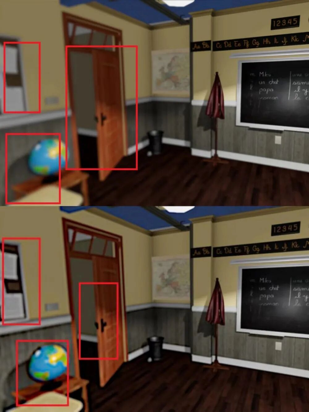 ▲上面是普通模糊处理的VR效果,下面是注视点渲染技术模糊效果