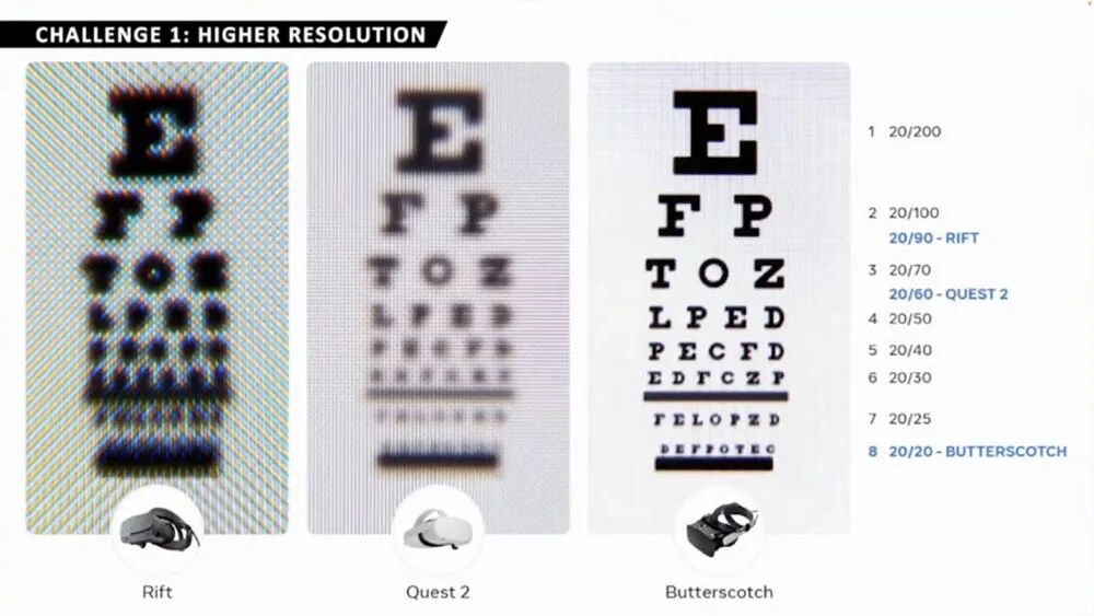目前Meta虽然在VR头显上已经取得了一些技术进展,但仍然遇到了很多目前无法解决的技术瓶颈。在SIGGRAPH大会的演讲中,Meta显示系统开发负责人Douglas Lanman为我们提供了一些参考方向——要想将VR体验提升到新的高度,目前有十大挑战亟待解决!谁能率先攻破这些挑战,谁就有望在愈演愈烈的元宇宙硬件入口抢夺赛中,争得先机。1、分辨率:Meta开发Butterscotch原型机,致力提高分辨率为了提高用户的沉浸感,让虚拟世界看起来更加逼真、清晰,VR头显必须拥有更高的分辨率。目前的VR头显分辨率离人类视觉水平还非常遥远。Meta表示,他们的初步目标是实现单眼8K分辨率和60PPD(像素密度)。但是目前Quest 2只达到了单眼2K分辨率和20PPD,距离这一目标还有较远距离。为了提高VR头显的分辨率,Meta开发了专注探索分辨率的Butterscotch原型机。在这方面,高分辨率显示器的开发和生产并不是难点,难点在于如何为高分辨率显示器配备相应的计算能力。Lanman指出,注视点渲染(Foveated Rendering)和云流送(Cloud streaming)两种技术或许有助于提升计算能力,但是这两种技术本身的研发难度也很大。![]()