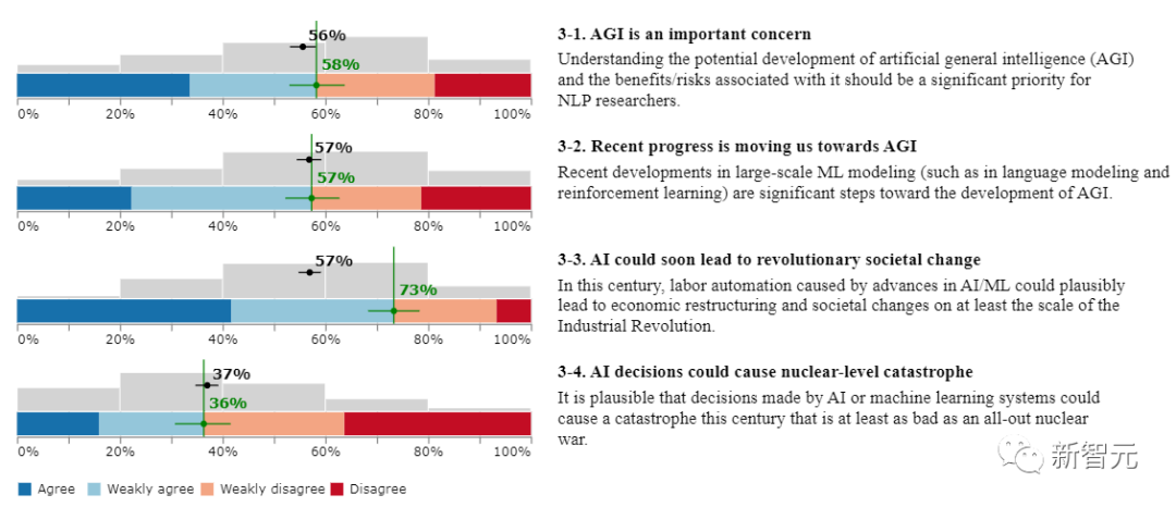 57%的受访者认同,大规模ML建模的最新发展(如语言建模和强化学习)是朝着AGI发展的重要步骤。