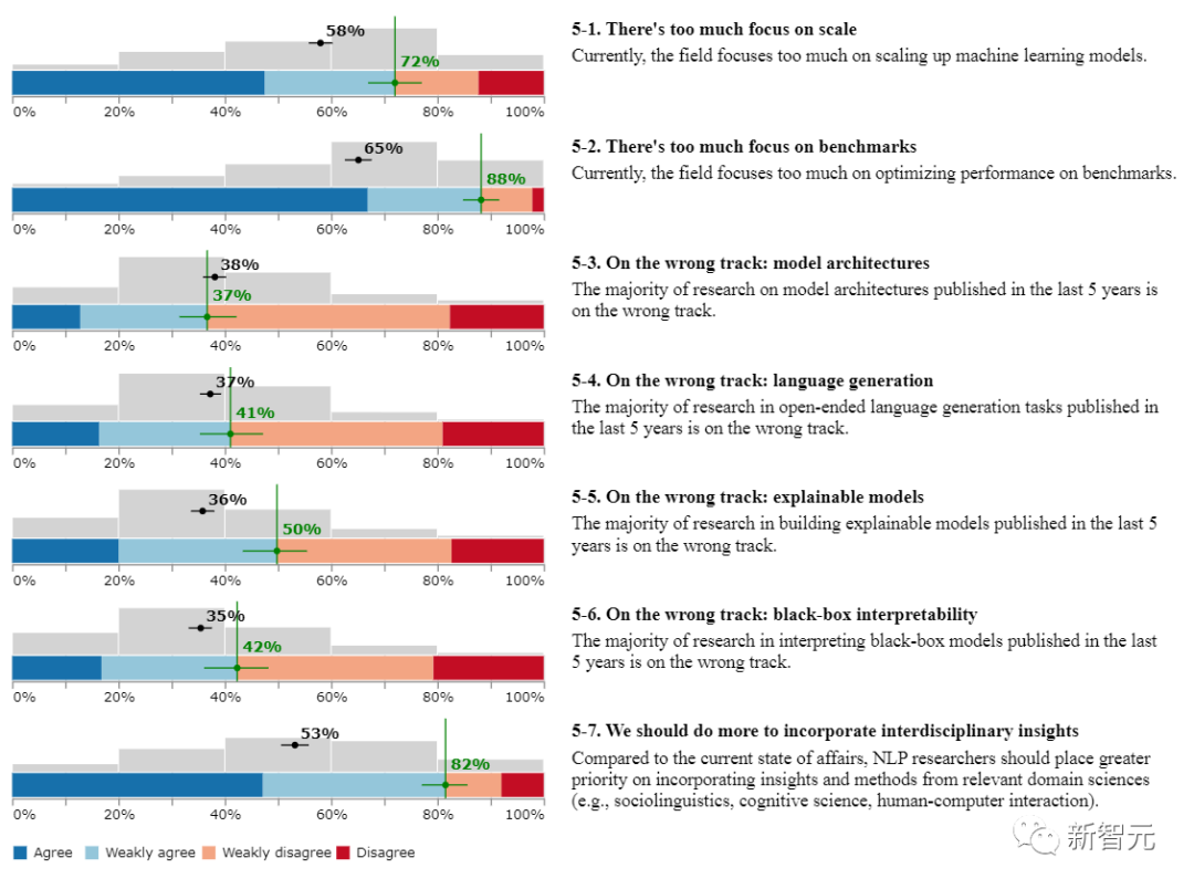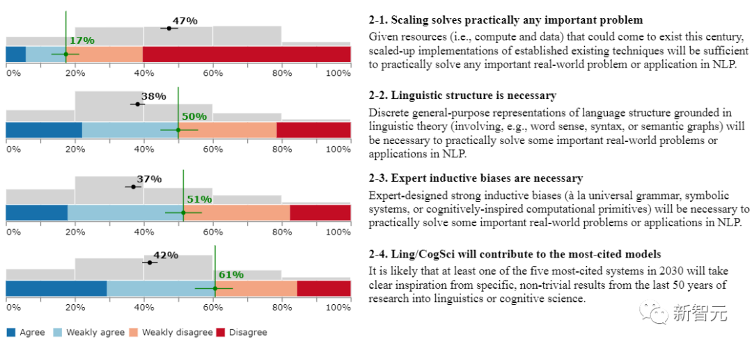 仅有17%的受访者认同,如果用上21世纪内所有的计算资源和数据资源,用现有技术的规模化实施将足以实际解决任何重要的现实世界问题或NLP的应用。