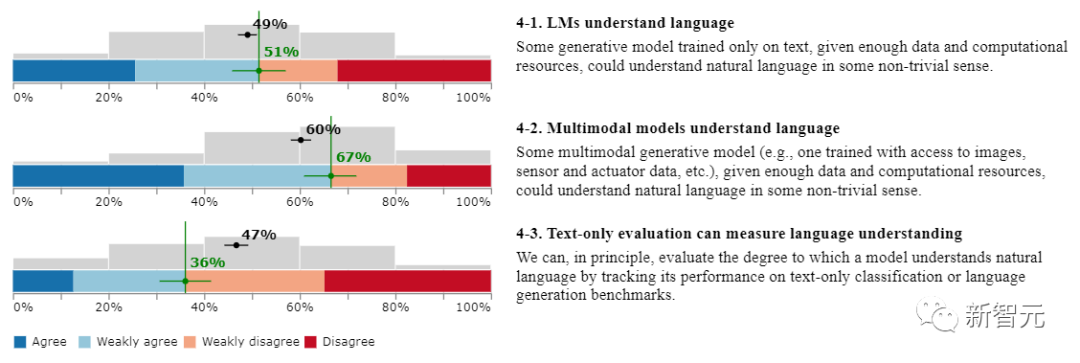 51%的受访者认同。一些只对文本进行训练的生成模型,如果有足够的数据和计算资源,就可以在某种意义上理解自然语言