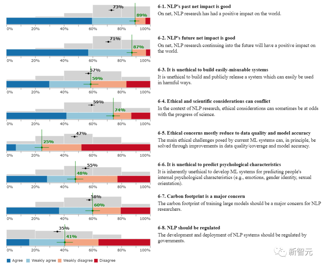87%的受访者认同,总的来说,NLP的研究在未来会对世界产生积极的影响。