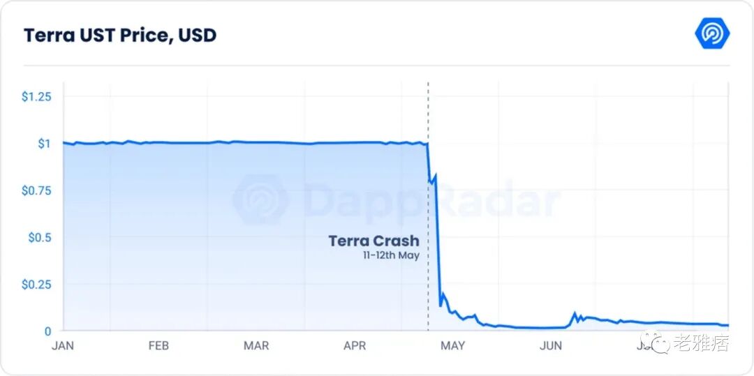 在这个时期,一个UST的价格已经是0.8美元。这意味着任何为了套利USTLUNA人都会得到0.2美元。人们继续使用这种套利方法,直到LUNA和UST几乎失去了所有的价值。