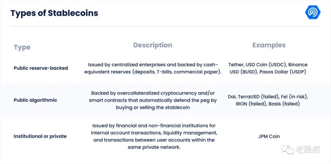 对于任何一种稳定币来说,衡量其表现的最重要指标或许是其与参考价值挂钩的程度。如上表所示,稳定币可以从不同的角度进行分类,每种类型都有自己的缺点。