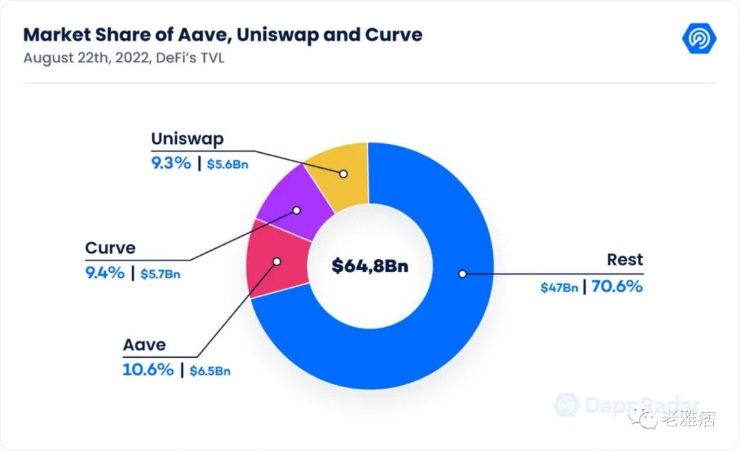 DeFi Aave协议是全球第三大TVL协议,其价值约为65亿美元,仅次于Uniswap和Curve。它主要通过借入和借出加密货币来向加密货币市场提供流动性。