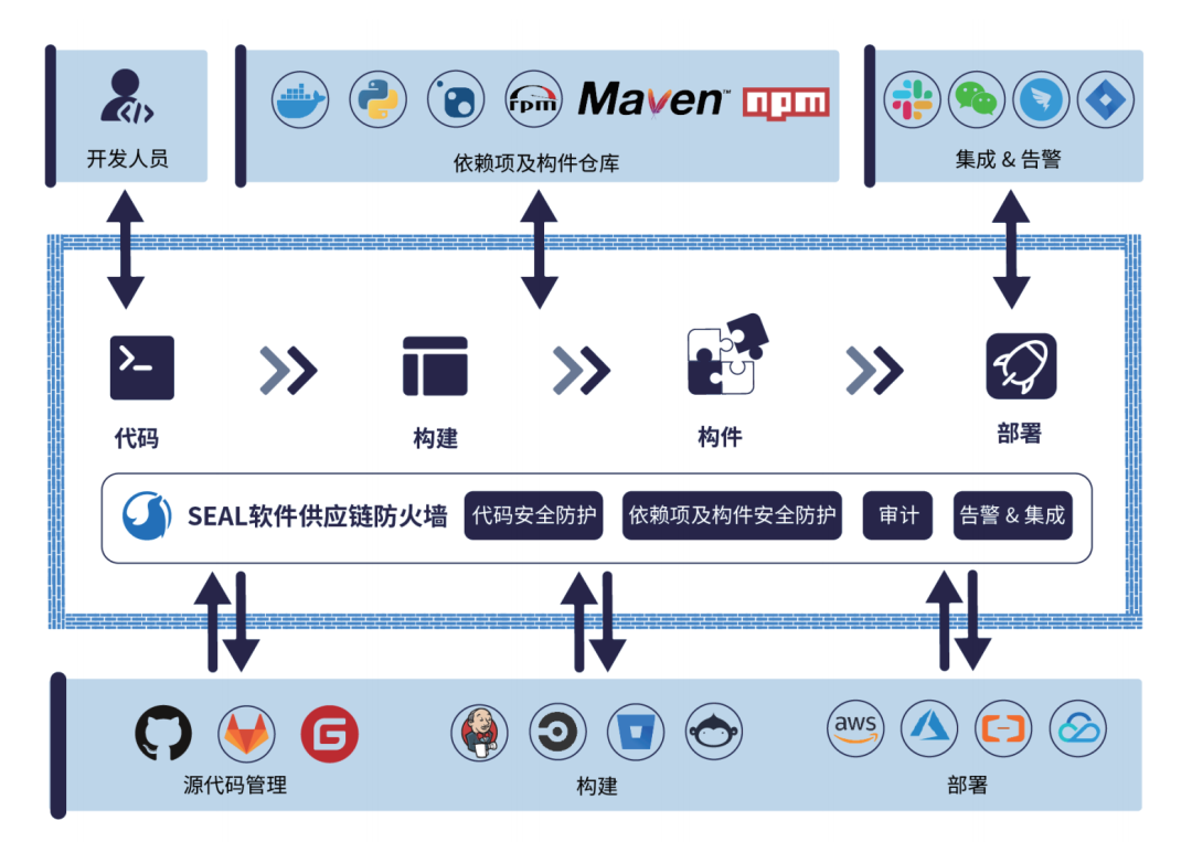 为了能够给企业提供全链路高度可信赖的软件供应链防护,梁胜博士提到:“Seal 的软件供应链防火墙能整合企业现有的静态代码分析(SAST)和软件成分分析(SCA)工具,使这些工具能更有效地保护软件供应链。”