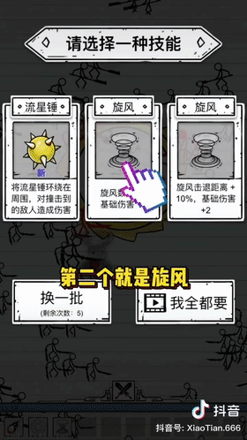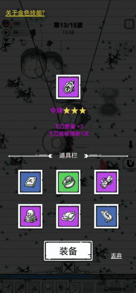“吸血鬼幸存者like”游戏的玩法焦点大多集中在肉鸽部分,《纸上弹兵》也不例外。在《纸上弹兵》中,除了角色自带的普攻技能,Roguelike模块还为玩家准备了丰富的技能以供选择,比如防守技能有气场、旋风等,攻击技能有飞镖、流星锤、落石、触手等,多种技能可以随机选择组合,随机掉落的道具和宝箱还将为游戏技能带来数值加成。