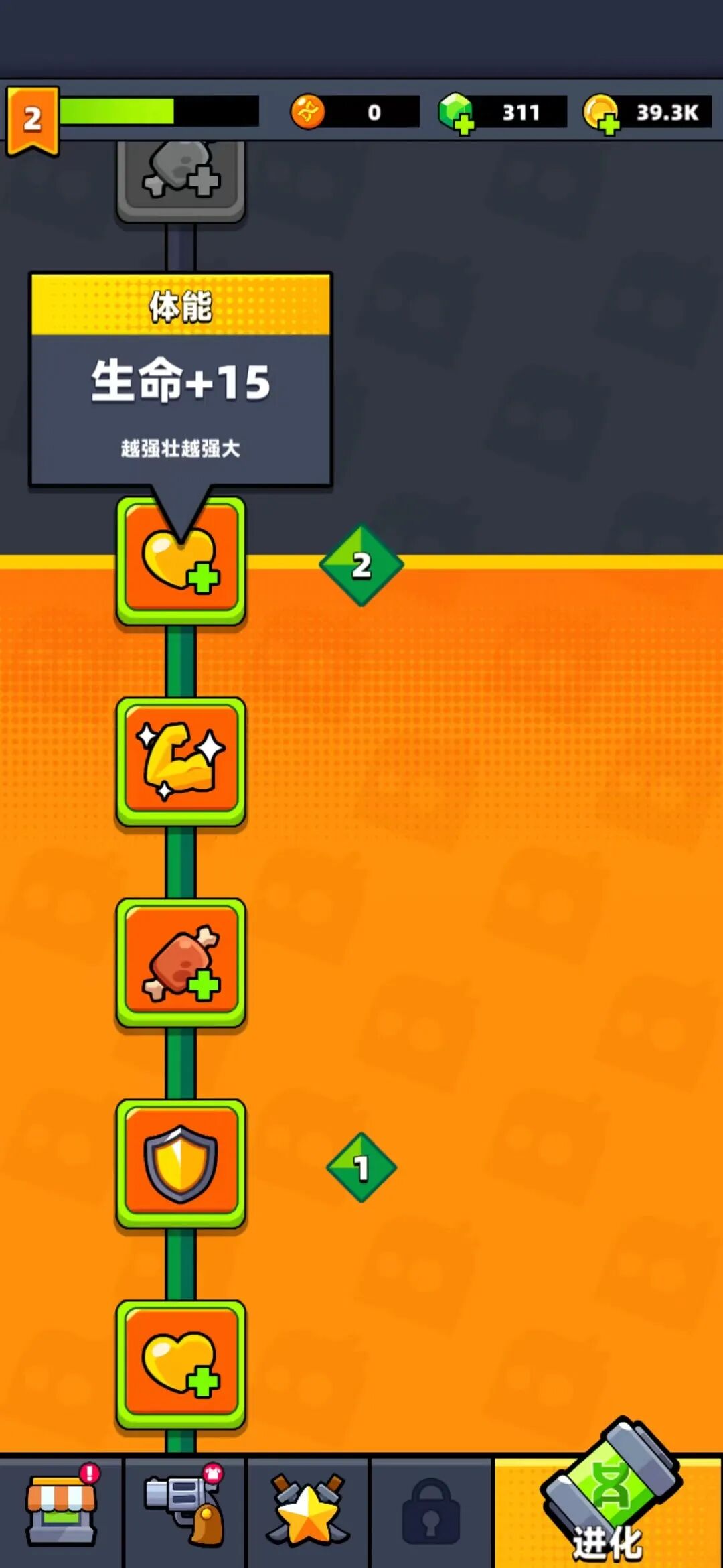 在养成线路中,除了可长线培养的装备模块,《蛋壳特攻队》还设计了一个进化树,玩家可以在游戏过程中不断升级进化树,提升攻击力、恢复速度、生命上限等数值。