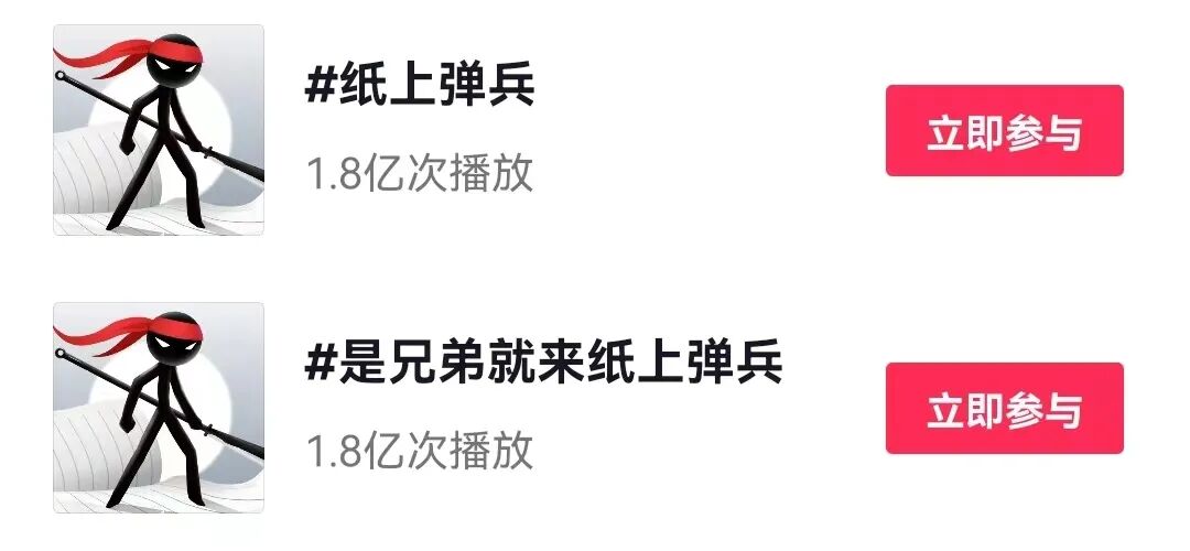 进入推广阶段,Ohayoo以抖音为主要阵地,通过游戏发行人计划等方式吸引大量达人参与游戏内容制作,围绕怀旧画风、超爽割草玩法、技能流派、DIY技能、合成系统等要素,搭建游戏内容阵地,推出了#纸上弹兵、#是兄弟就来纸上弹兵 等热门话题,从而成功为产品造势,加速产品爆量。目前,#纸上弹兵、#是兄弟就来纸上弹兵两个话题的播放量已经累计超过了3.6亿。