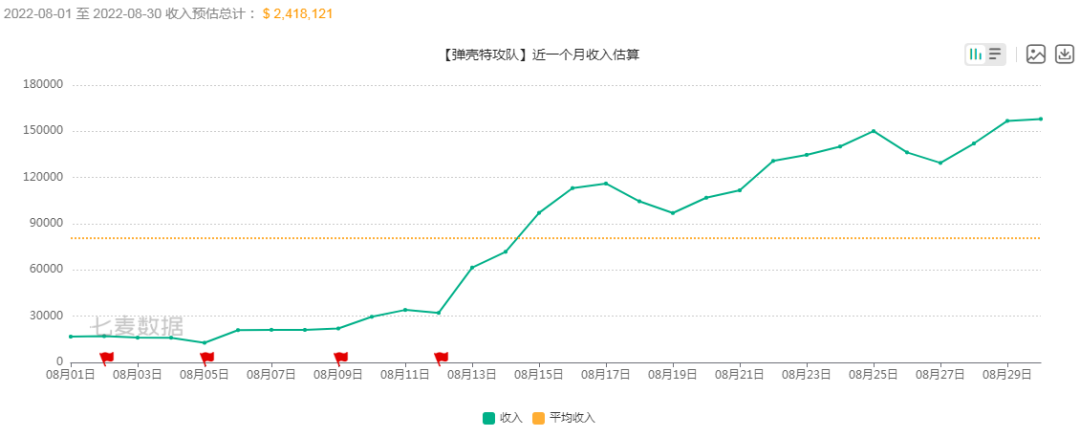 7月4日,《蛋壳特攻队》正式上线国内App Store,并于8月12日跻身首次进入iOS免费游戏榜单TOP5,且至今已连续半月稳坐免费榜TOP2。据七麦数据预估,《蛋壳特攻队》近一个月的下载量总计突破了288万,收入累计超241万美元。