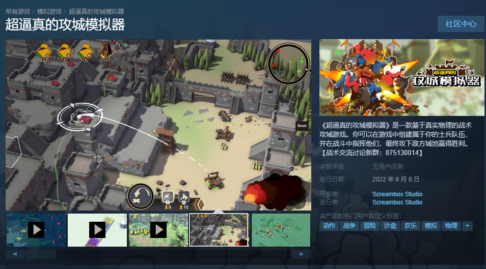 这里我想举例的,同样也是2022GWB上一款获奖作品:游戏演出看起来非常“胡逼”和搞笑,底层玩法却意外严谨乃至有些硬核的《超逼真的攻城模拟器》。