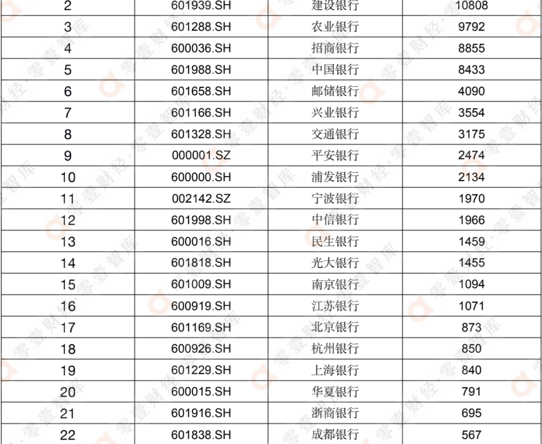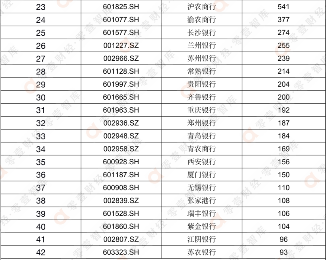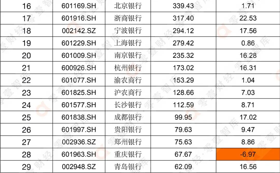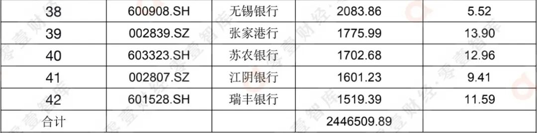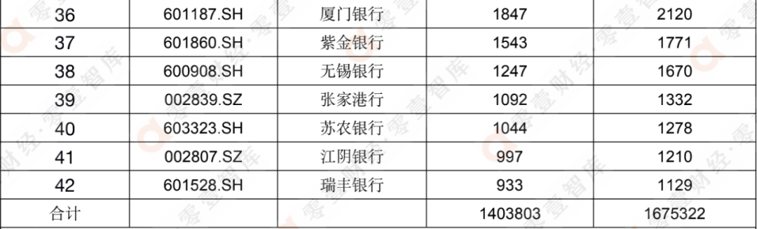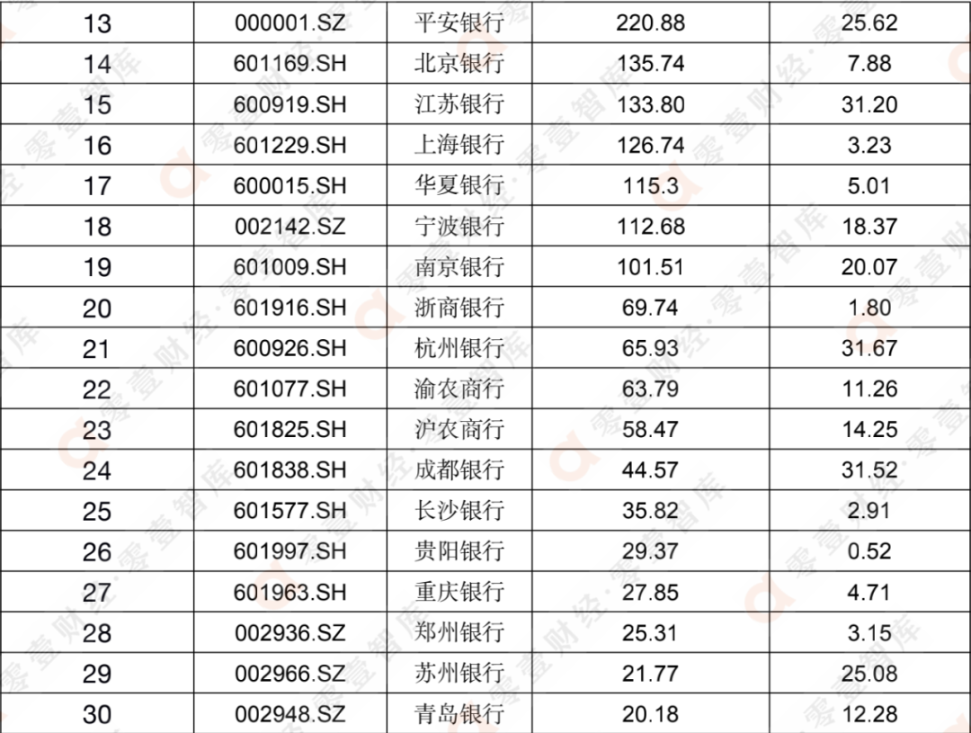 九、总市值:16家市值超过1000亿元,2家银行还在百亿元以下
