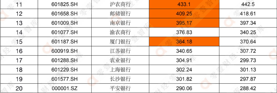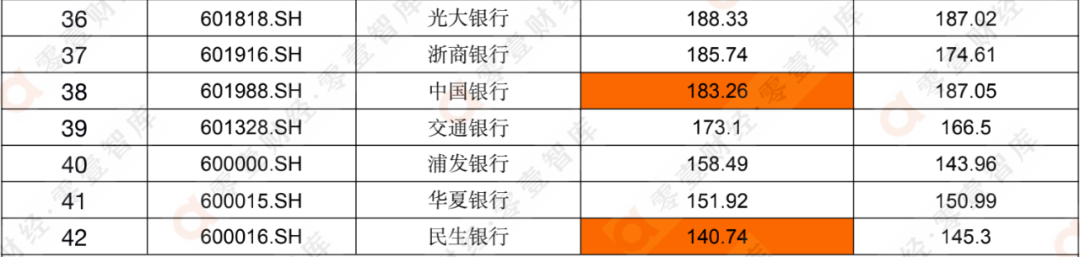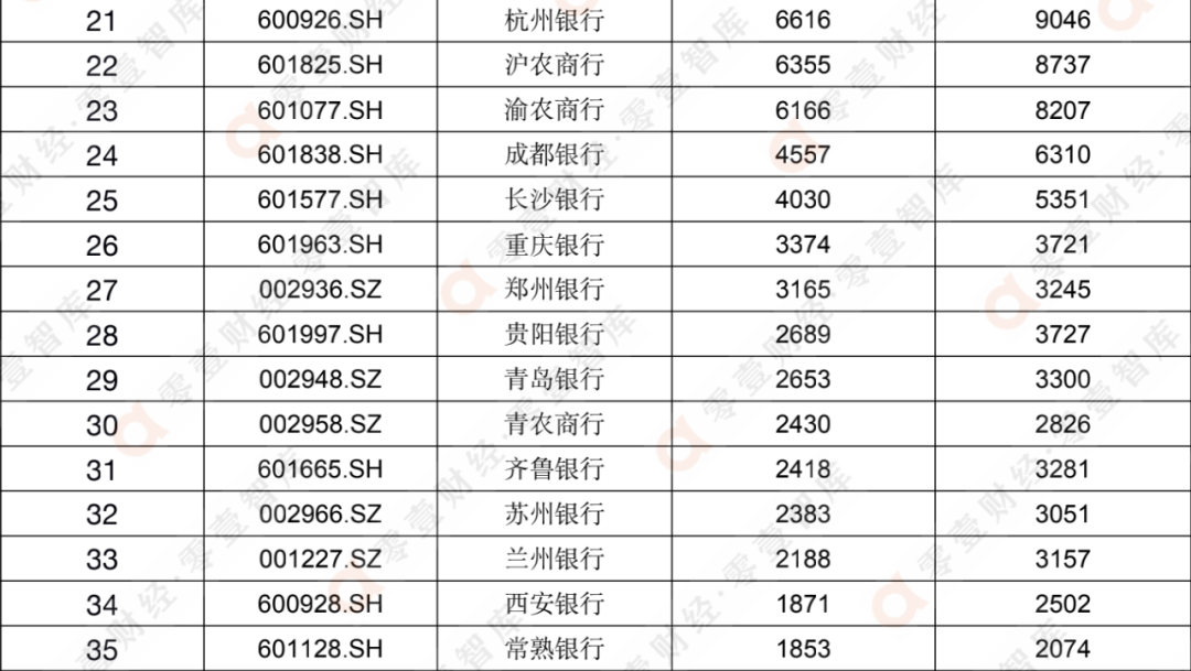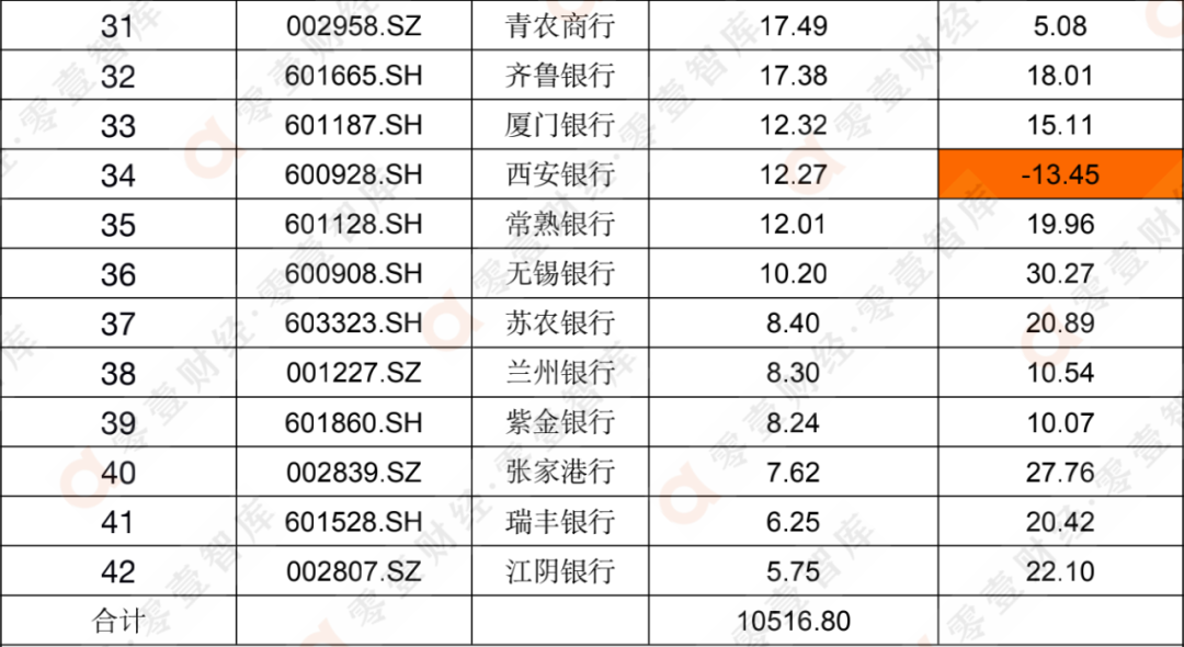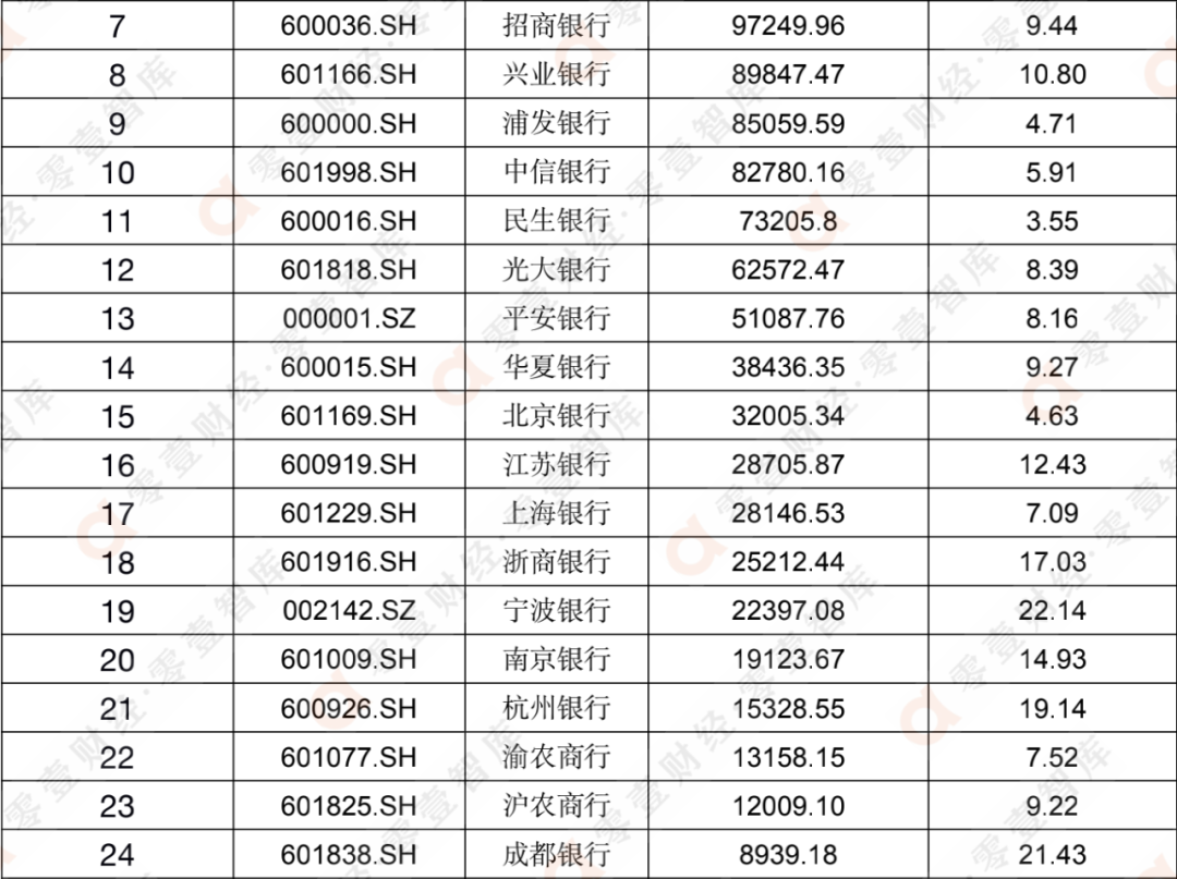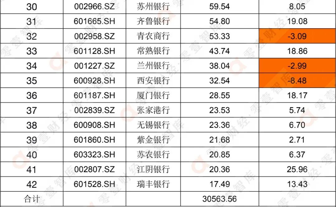 九、总市值:16家市值超过1000亿元,2家银行还在百亿元以下