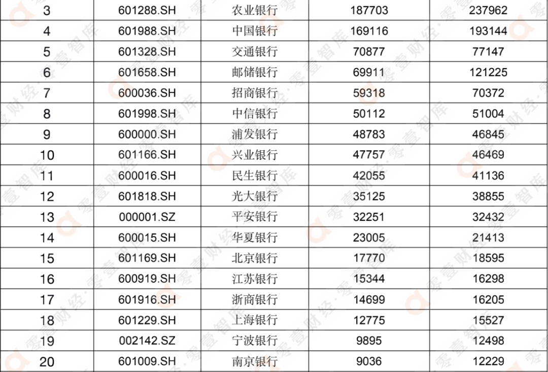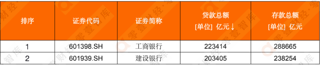 存款总额超过1万亿元的银行达20家。其中,工商银行、建设银行、农业银行、中国银行、邮储银行5家银行存款总额超过10万亿元。
