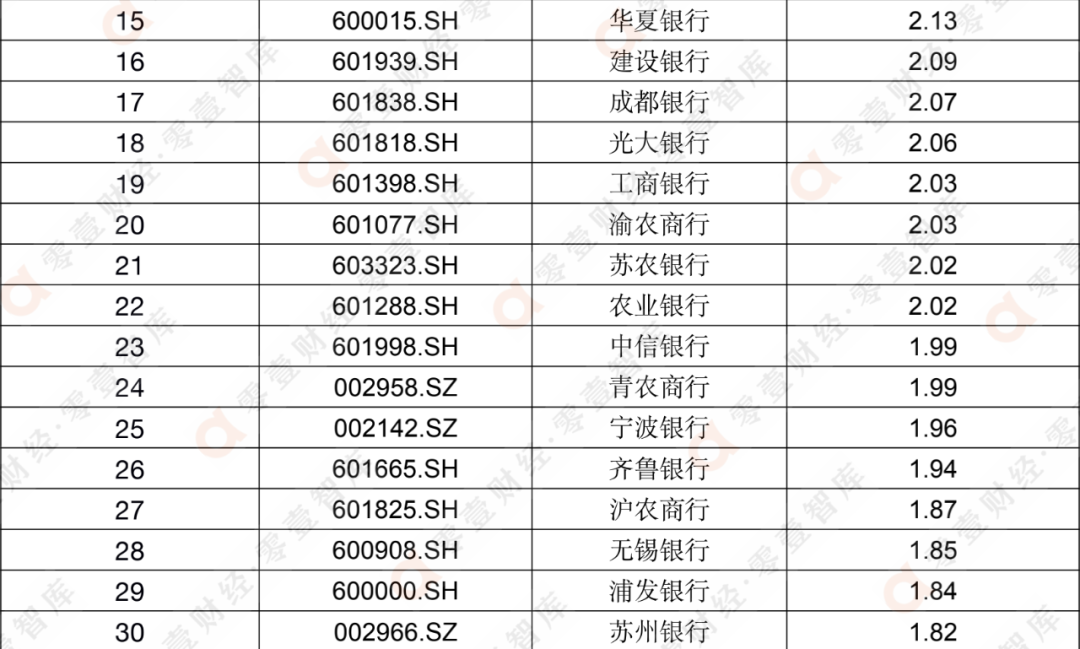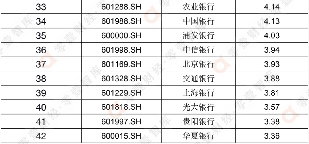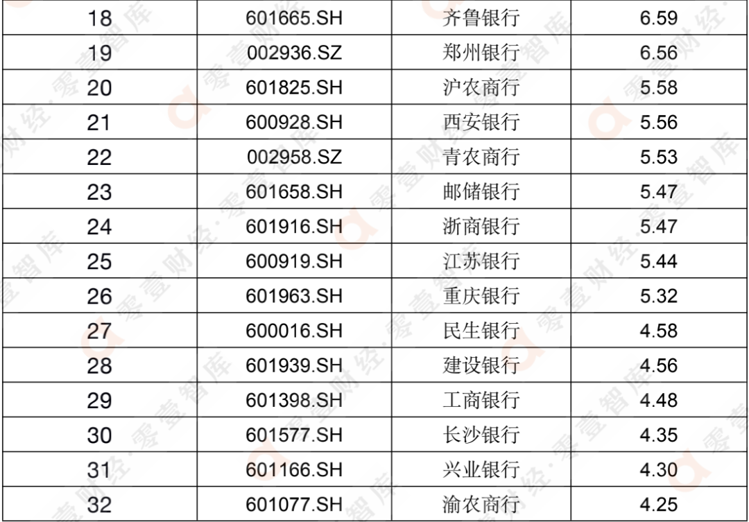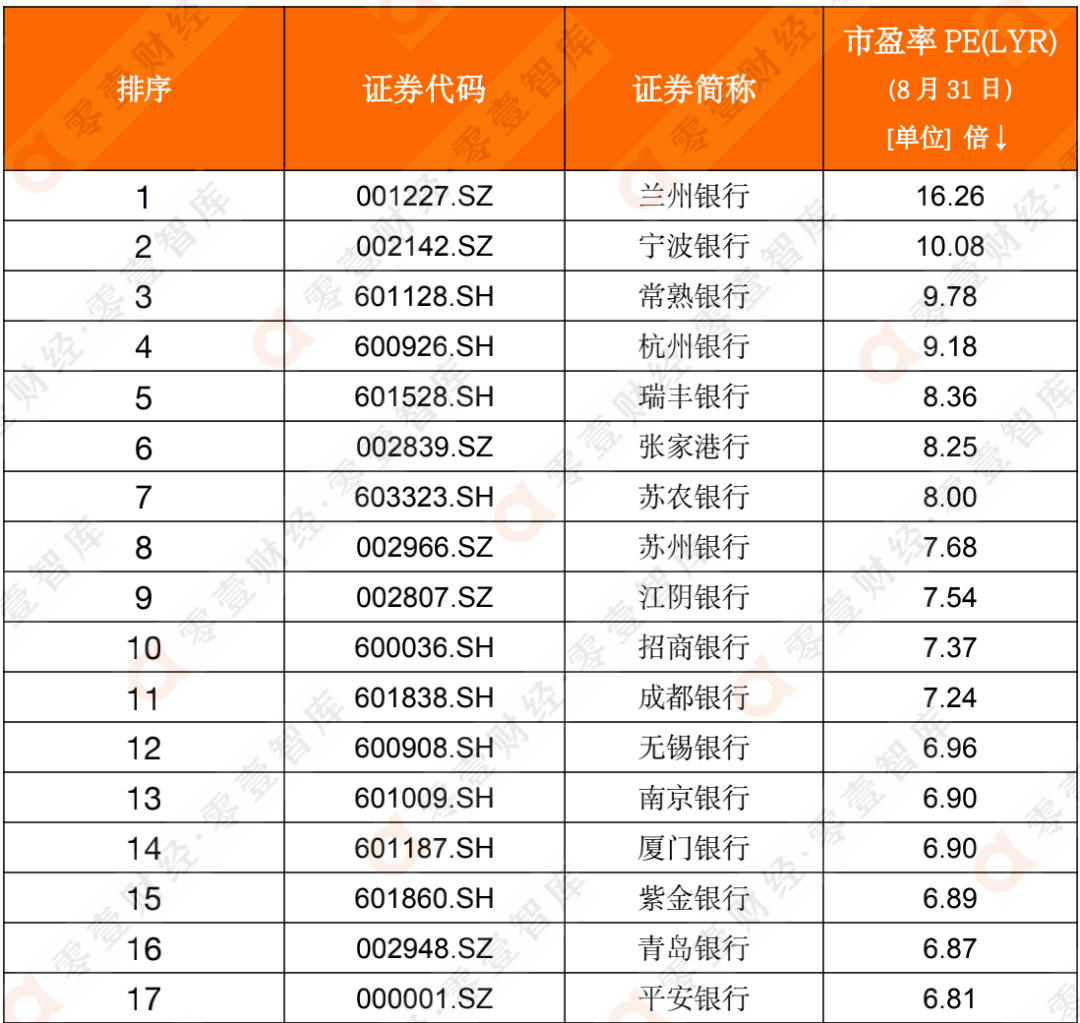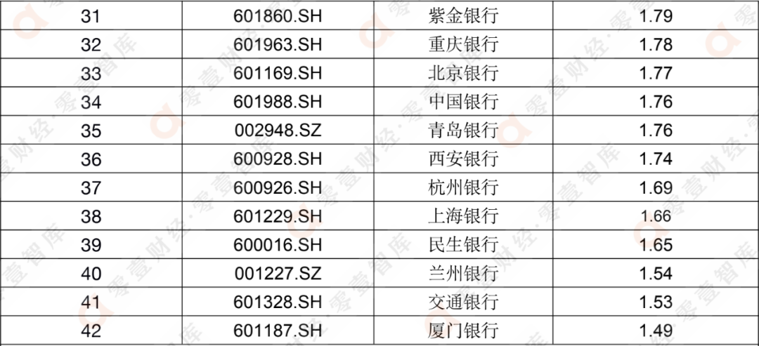 从市盈率的角度看,A股42家上市银行均在3倍以上,其中有26家银行市盈率达到5倍以上,市盈率达到10倍以上的银行有2家,分别为兰州银行、宁波银行。
