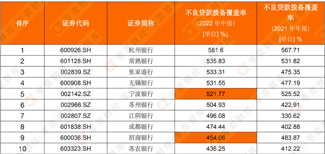 表5:A股上市银行拨备覆盖率排名(2022年中报)